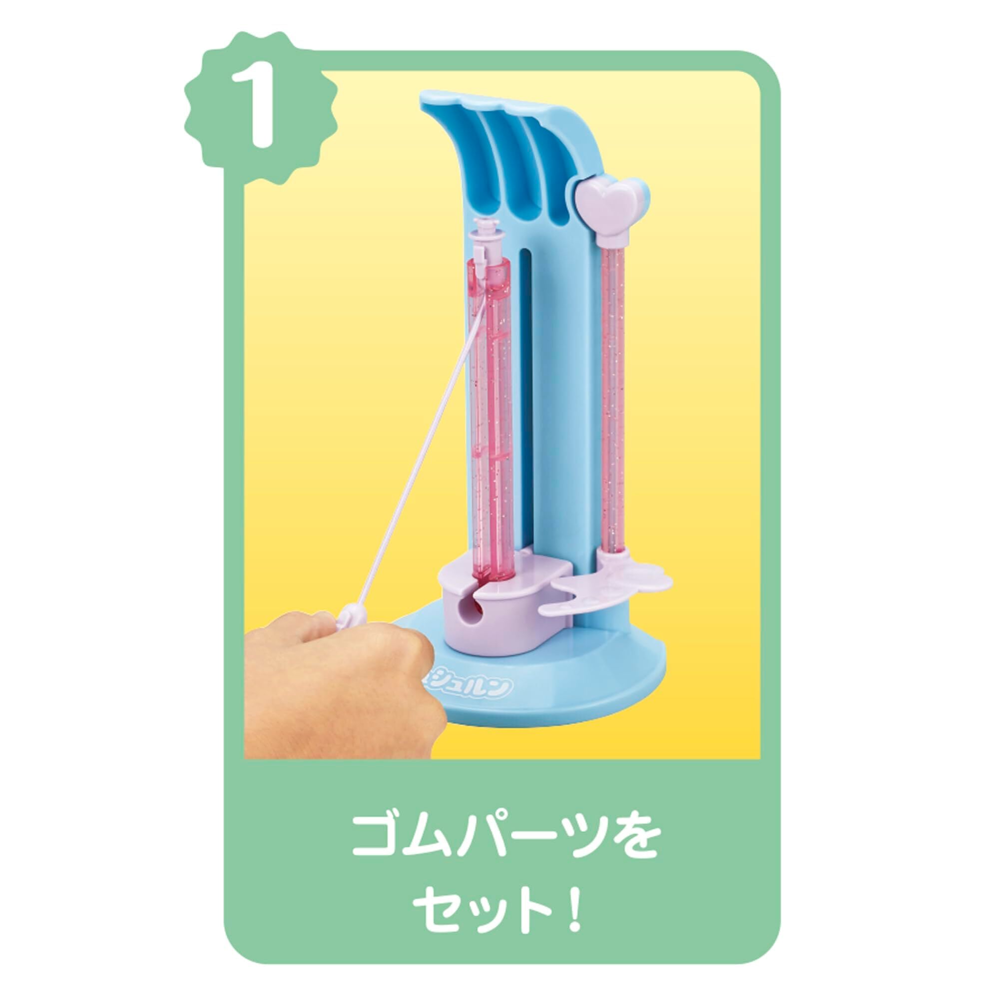 ・おしゃれなシュシュが簡単に何度でも作れます。 ・対象年齢:6才以上 ・セット内容:シュシュルン本体、シュシュ用生地×5、ゴムパーツ×3、ビーズパーツ、ほしチャーム、黒リボン、紫リボン、説明書