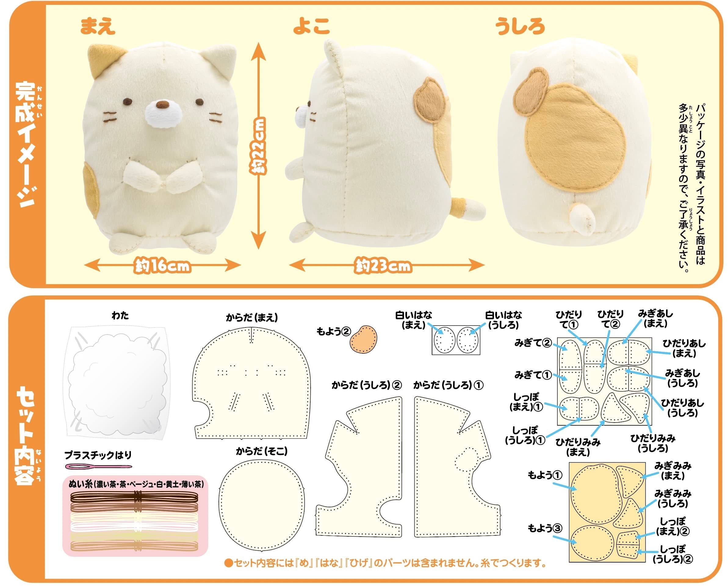 尾上萬(Onoeman) 清原(KIYOHARA) 尾上萬 すみっコぐらし はじめてのソーイングキット ぬいぐるみ ねこ OM-023220|かわいいすみっコぐらしのぬいぐるみを手作りしてみませんか!
