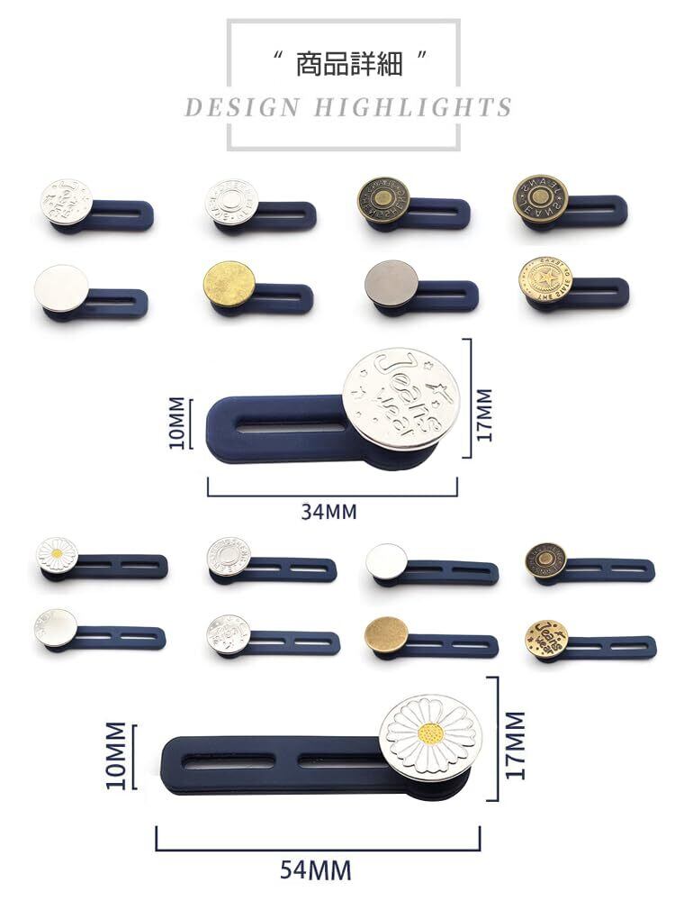 このウエスト調整ボタンは、ジーンズ、スカート、ズボンなど、様々なアイテムに活用できます。自宅でのDIYや洋服のリメイクを楽しみたい方には特におすすめです。あなたのコレクションをグレードアップさせるチャンスです!
