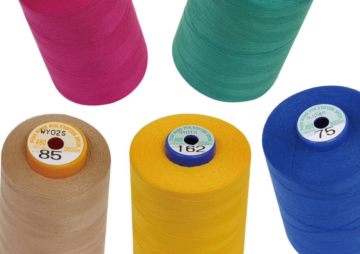 お待たせしました!「FUJIX キングスパン スパン ミシン糸」が5000mという大容量で新登場です。この糸を使用することで、縫製がもっと楽になり、あなたの作品に洗練された仕上がりをもたらします!