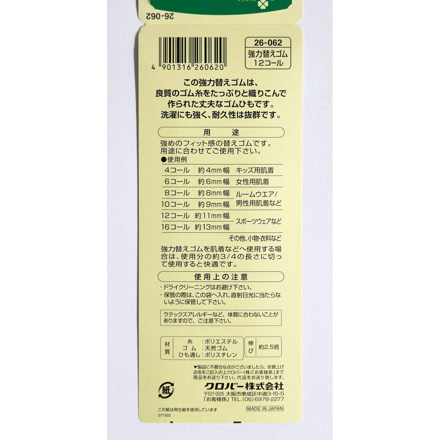 クロバー(Clover) 強力替えゴム 12コール 白 26-062
