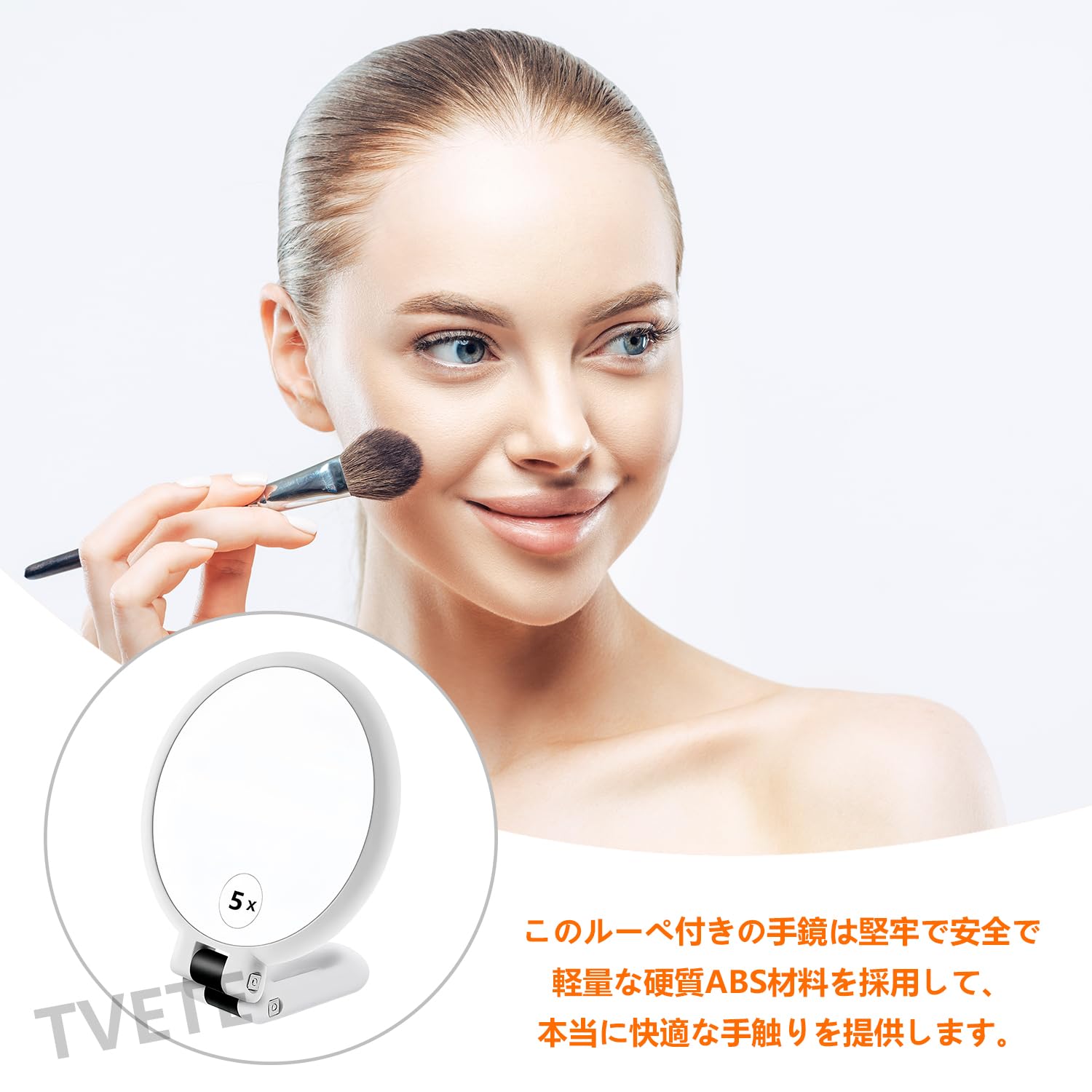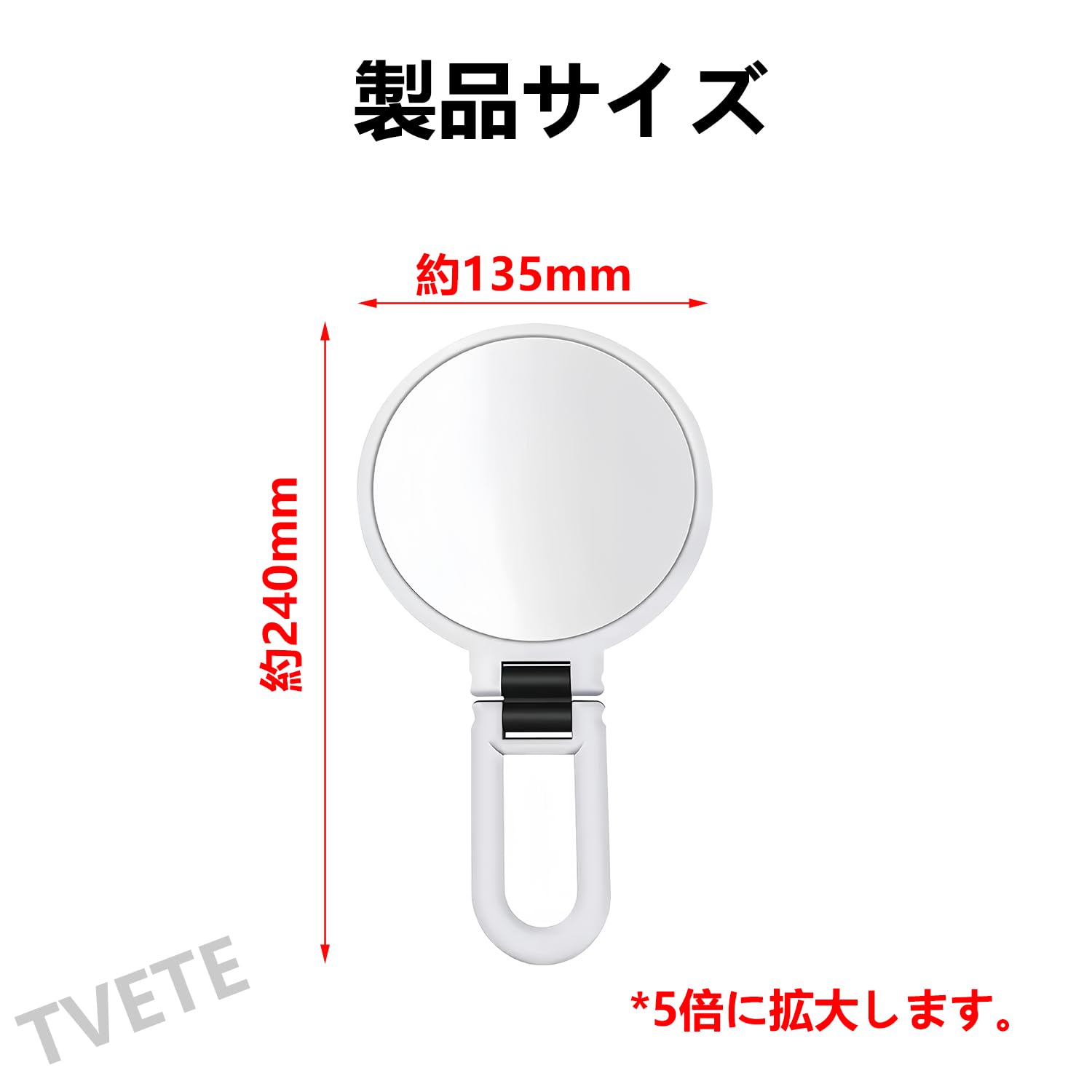 手鏡 5倍拡大鏡 卓上鏡 ハンドル付き両面鏡 スタンドハンドミラー 折り畳み式化粧鏡 円形 ホワイト