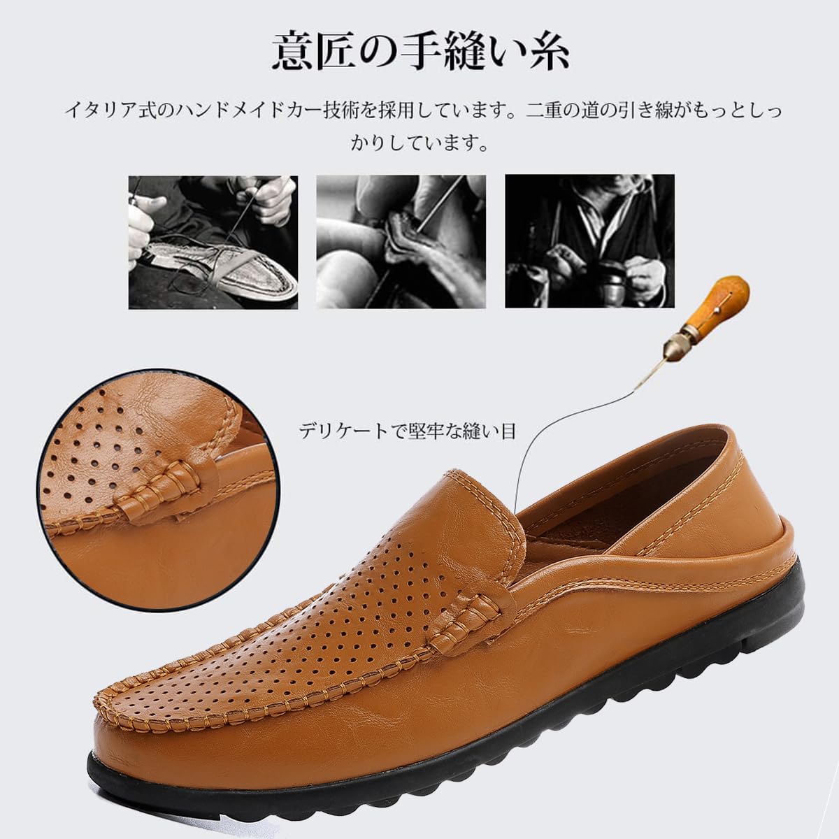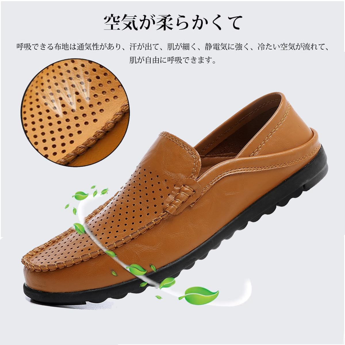 [ziitop] メンズ ドライビングシューズ 軽量 スリッポンシューズ 通気性の 2種履き方 クラシック 職場用 モカシン 靴 夏のホローカジュアルシューズ