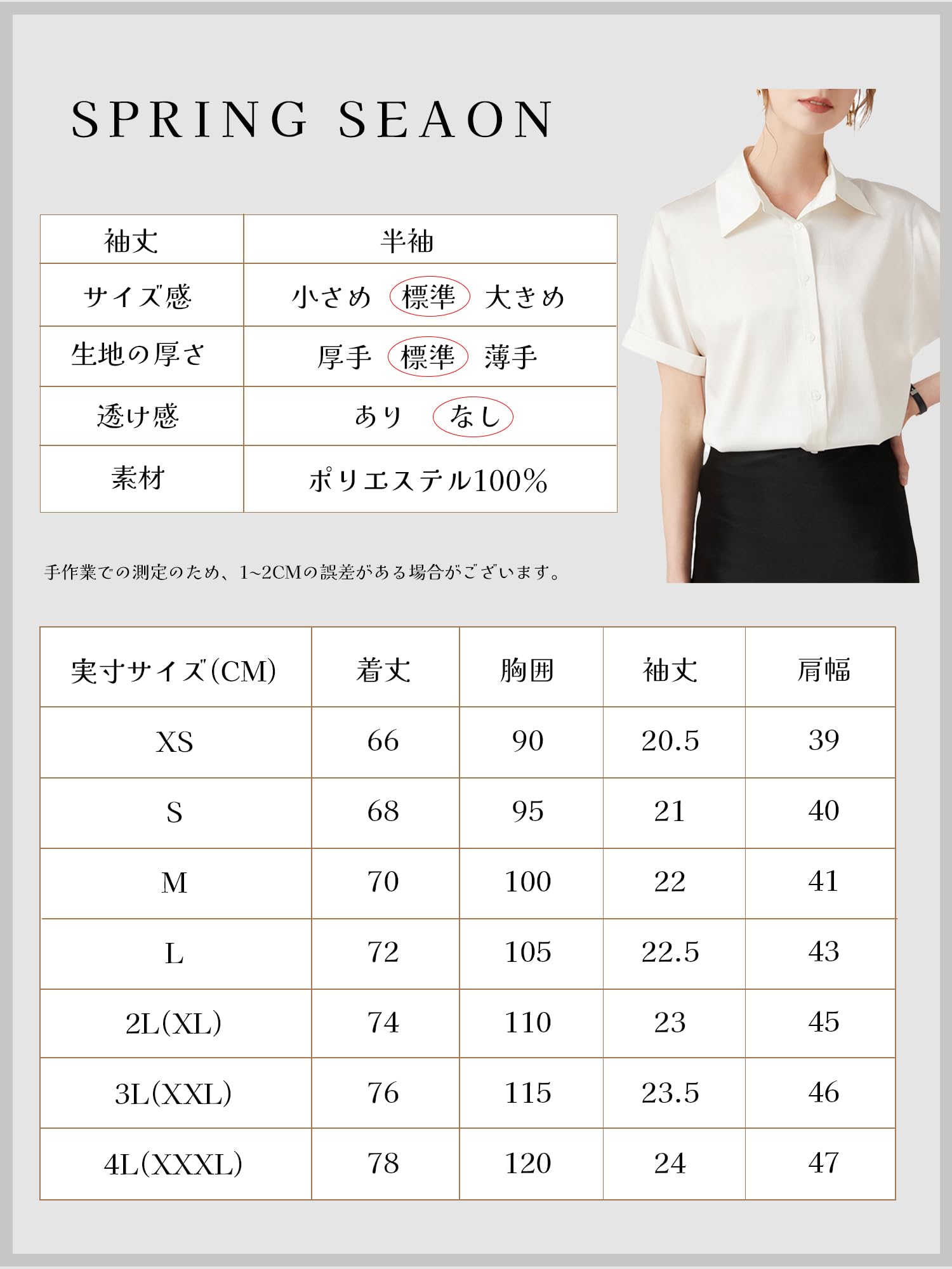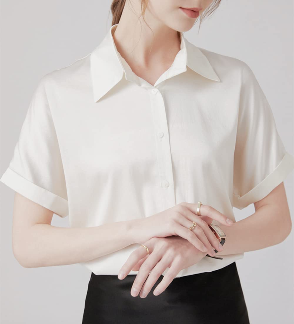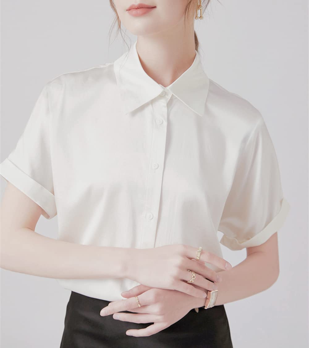 [SPRING SEAON] シャツブラウス レディース トップス 半袖 夏 カジュアル オフィス ノーアイロン 形態安定 とろみ ゆったり 大きいサイズ ビジネス ファッション 通勤 業務服 高通気性 2S~4L