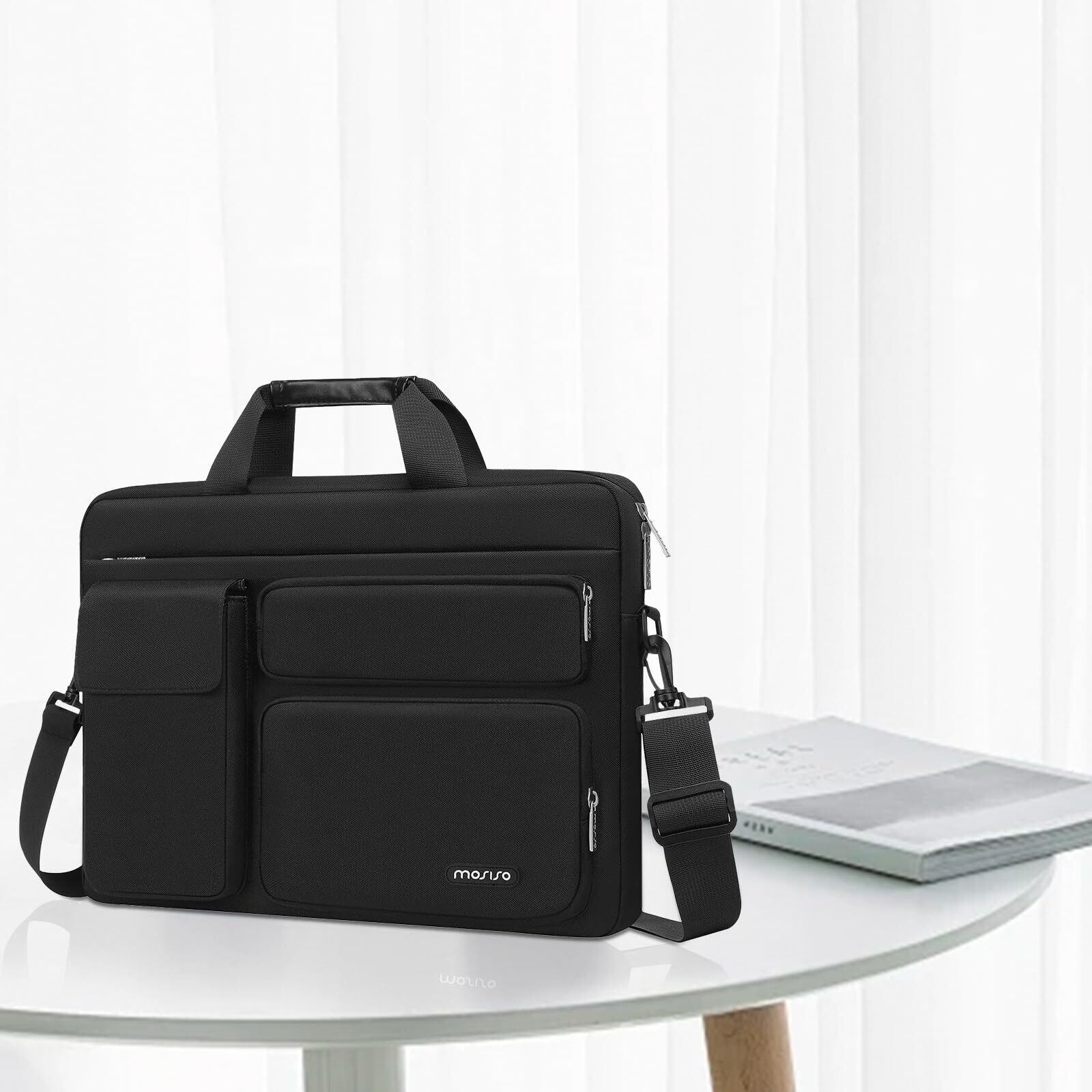 [MOSISO] ラップトップ ショルダー メッセンジャーバッグ、対応機種 MacBook Air 15/Pro 16 インチ、15-15.6 インチ ノートパソコン、二つ盛り上がるポケット&一つフラップポケット&一つ水平ポケット&フィックス ハンドル&ベルト付き(ブラック)
