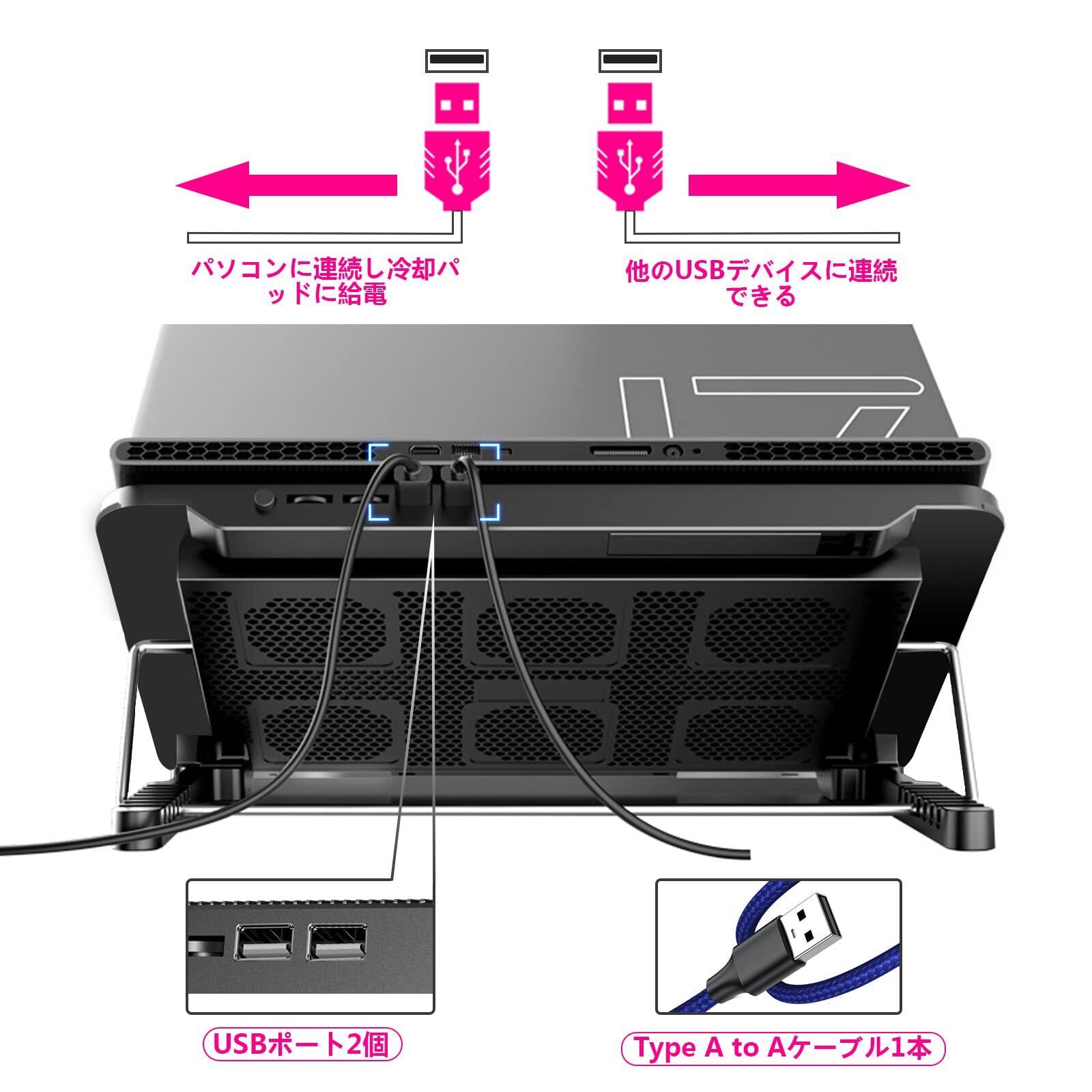 LiANGSTAR ノートパソコン冷却パッド 6つ冷却ファン ノートPCクーラー 7段階高さ 角度調整 風量調節 冷却台 2つUSBポート 静音 スマホンスタンド付き 最大17.3インチまで対応 (Blue)