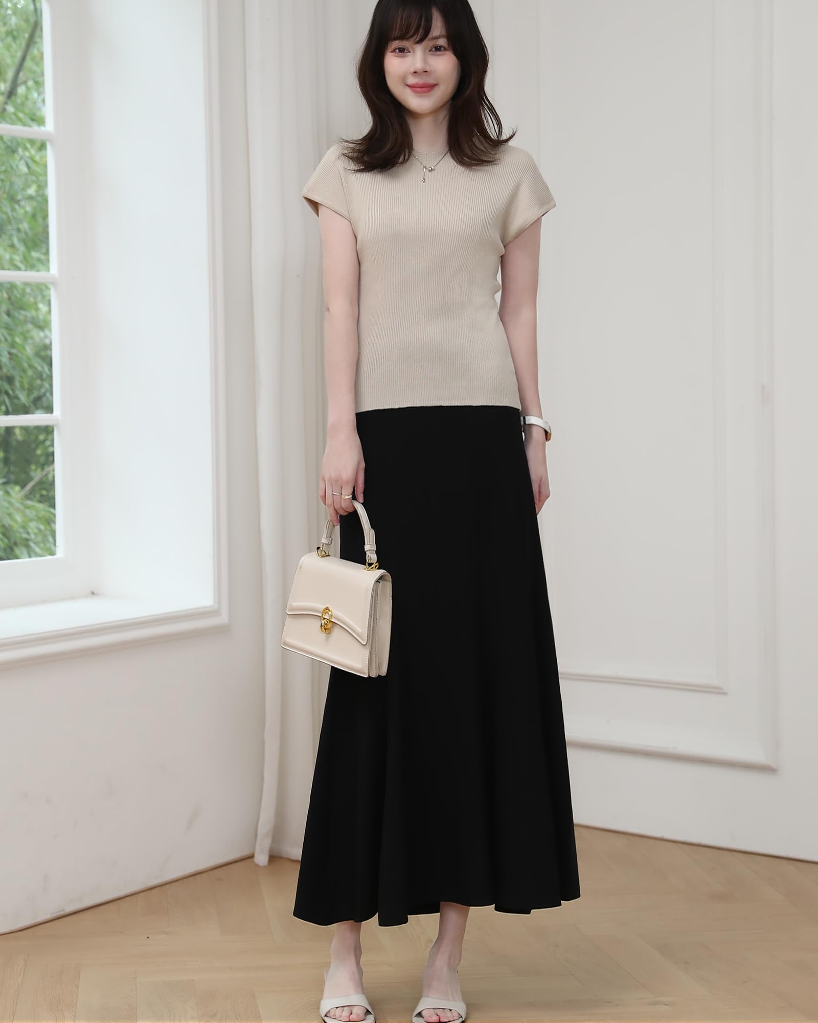 柔らかくて肌にやさしい素材なので、直接肌に触れてもチクチクせず着心地が良いです。ウエストの後ろに一段ゴム入りで、履き心地がらくらくで嬉しいポイントです。左側にコンシールファスナーが設置しており、着脱が便利で、全体的な美観には影響ありません。マキシ丈なので、お気になる太ももやヒップをしっかりとカバーしつつ、大人っぽくこなれ感が引き出せます。ハイウエストのデザインで、体型を問わずに小柄な方から高身長の方までご愛着いただけます。裏地付きなので透ける心配はありません。