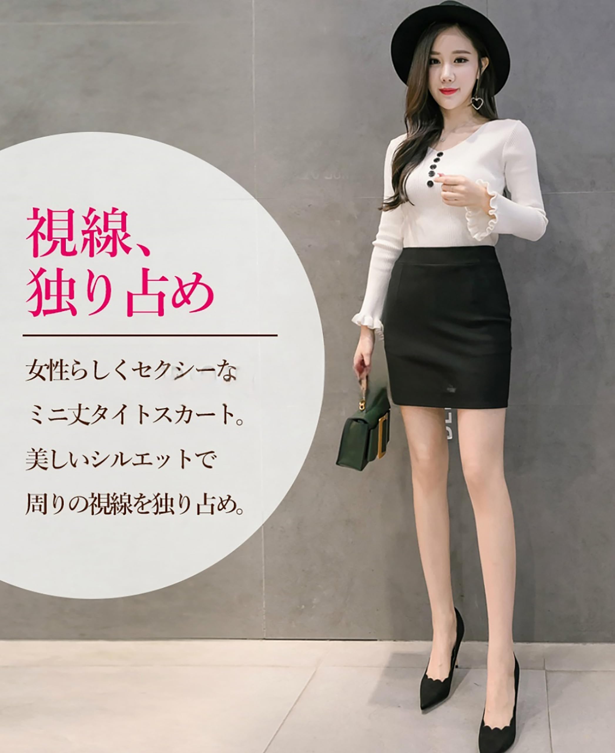 膝上ミニスカート、美脚を美しく表現、シンプルなスタイルが素敵で、女性の魅力をぐっと引き立たてます。