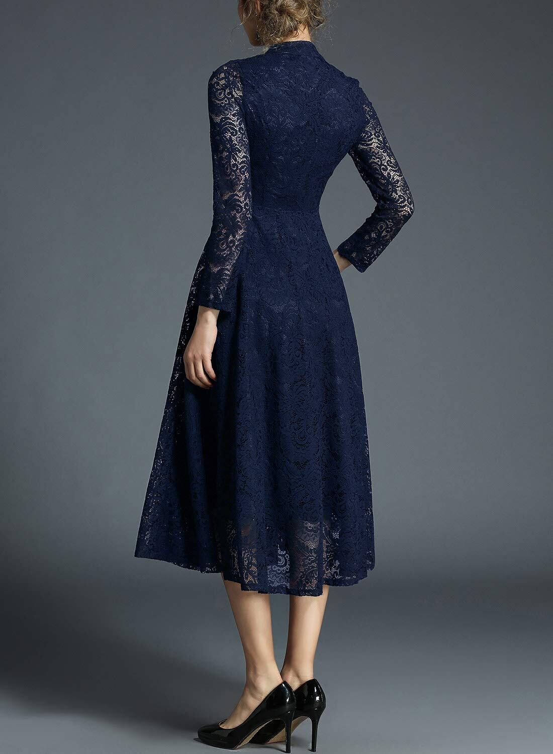 [Yino] 五色展開 ワンピース ドレス 結婚式 パーティードレス 総レース マキシワンピース 秋冬 春 レースワンピース ロングドレス 長袖 Aライン 20代 30代 40代 50代