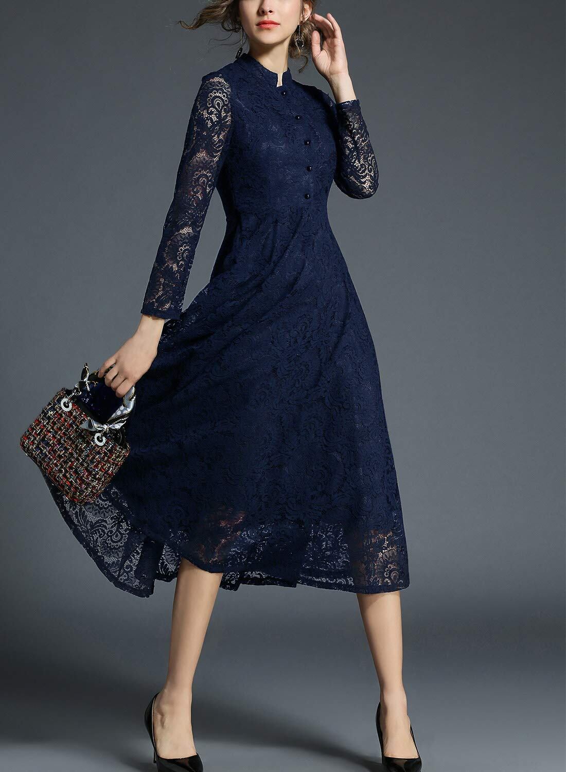レース細工の透け感が優しい雰囲気に、上品な印象を演出する;袖丈は長袖、気になる二の腕も上手に隠せる;高めのウエスト切り替えで、脚長シルエットが完成します;ロング丈でも重たさを感じさせない、裾のレースがポイントです。