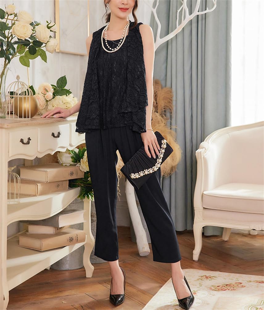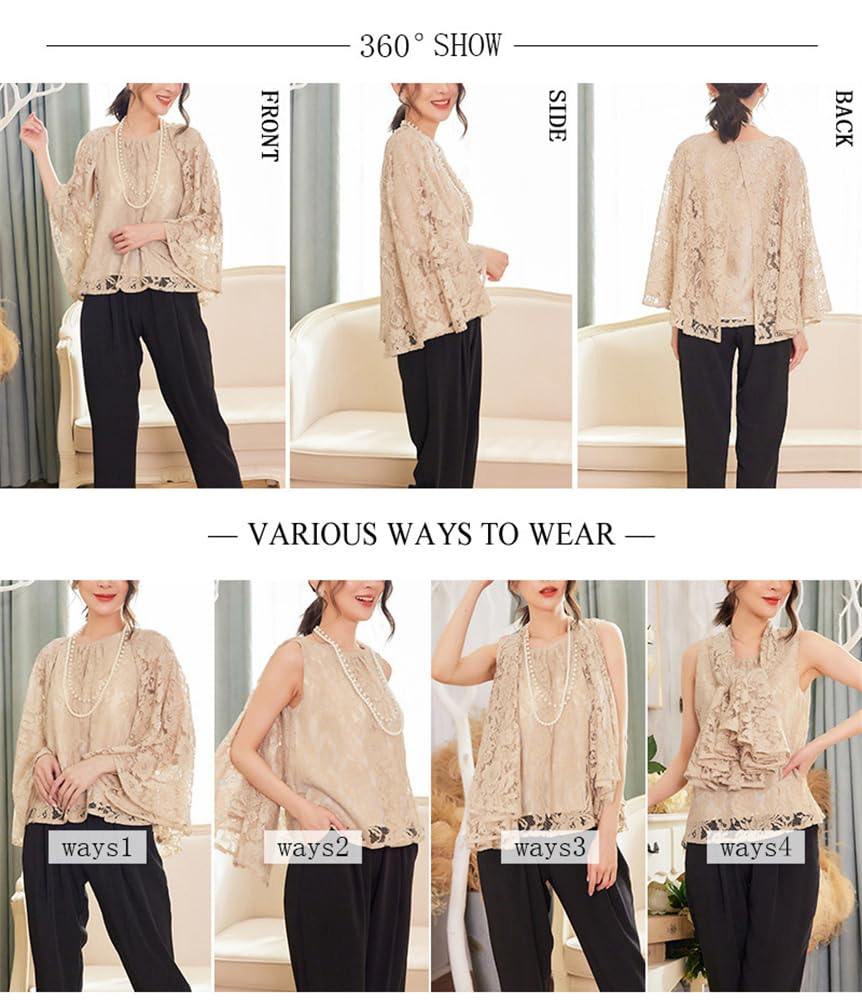 [ZHENGTU] レディース パンツスーツ セットアップ レースブラウス ケープ風 パンツドレス テーパードパンツ パーティードレス 結婚式 披露宴 お呼ばれ