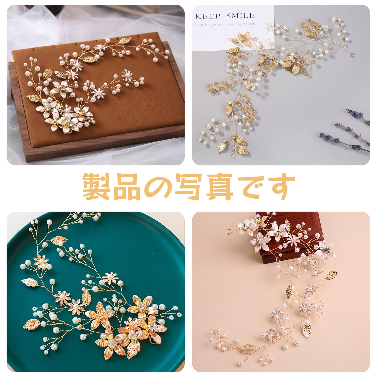 Doyime ヘッドドレス ウェディング 花嫁 髪飾り パール ライン ストーン ゴールドリーフ 手作り 花かんむり おしゃれ ヘアアクセサリー お呼ばれ 髪飾り 披露宴 結婚式 二次会 和装 パーティー 演奏会 卒業式 成人式 入学式 発表会