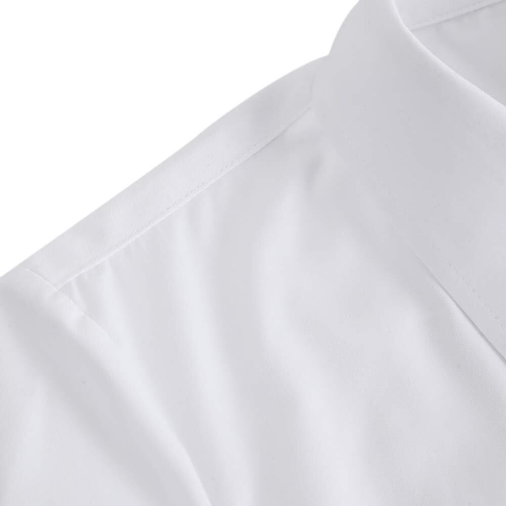 デザインはシンプルに。着回しもしやすく、スカートにもパンツスタイルにも合わせやすくなっています。清潔感のあるホワイトカラーは就職活動などのシーンにはもちろん、学生の方の洗い替え用のシャツとしてもお使いいただけます。