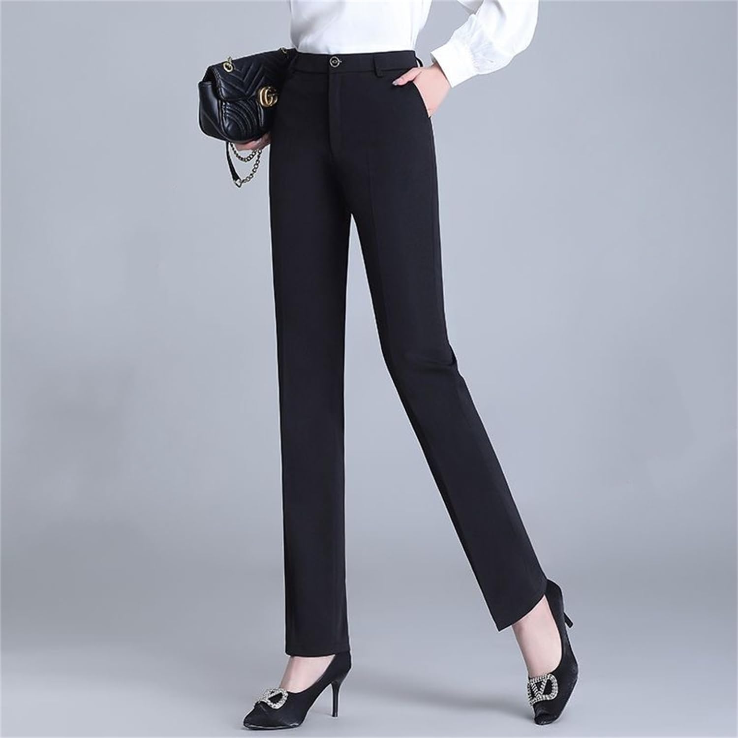 [billevan] 事務服 パンツ 高見え 通勤 オフィス 洗える 美脚 着痩せ ストレートパンツ フォーマル