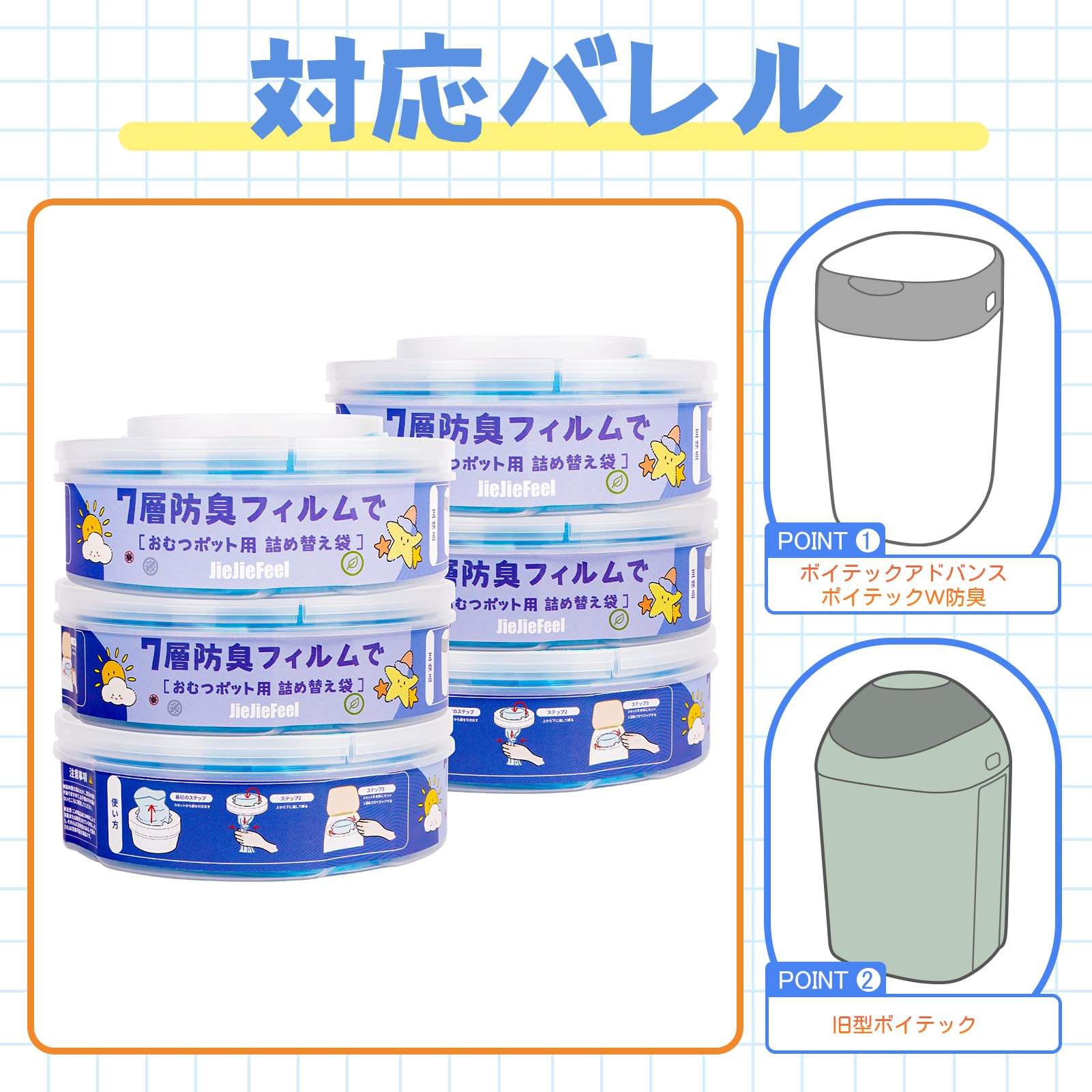 と互換性があります:ポイテック アドバンス/ 旧型ポイテック/ と互換性あり ,6個入おむつゴミ箱カートリッジ 。余計な香りが気にならない無香料タイプなので