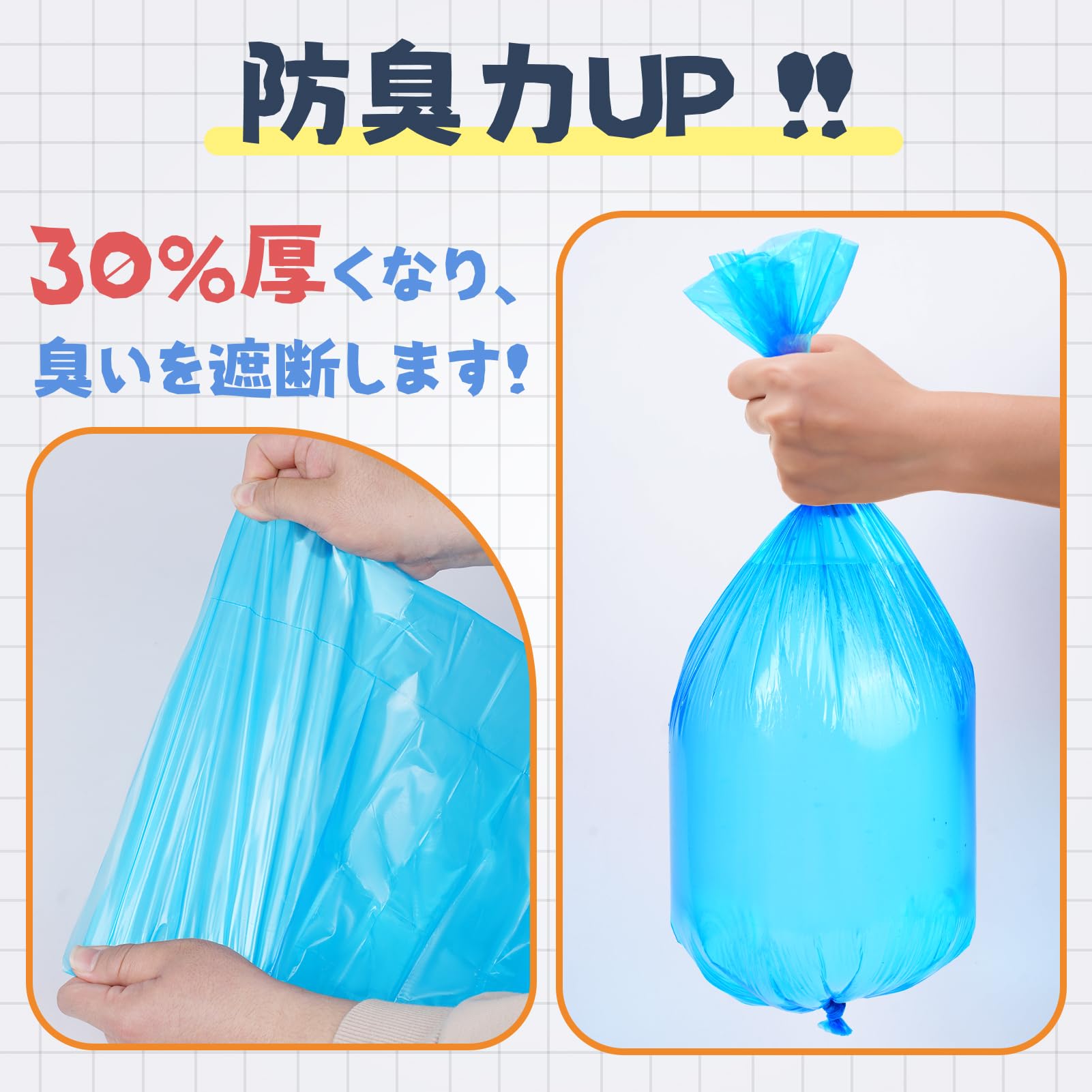 7層防臭構造: 特殊なPE層と7層設計により、不快な臭いを効果的にブロック。お部屋を清潔で快適な環境に保ちます