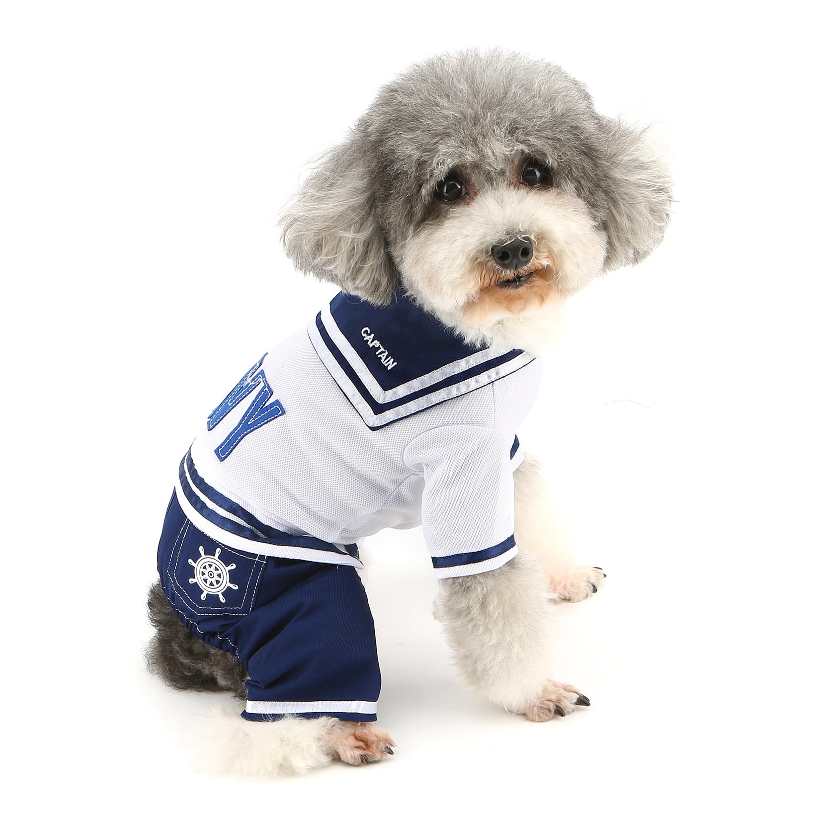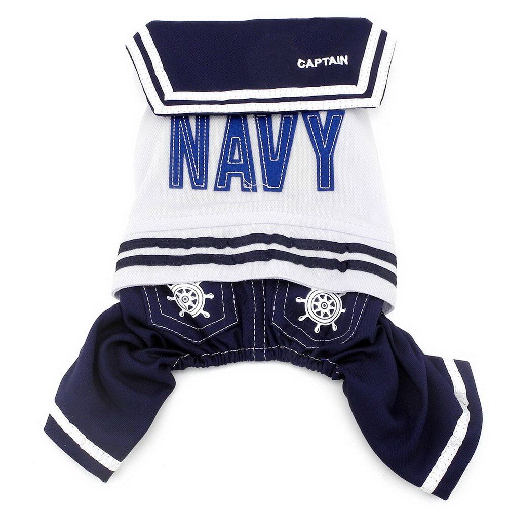 ZUNEA 犬の服 ロンパース つなぎ 海軍風 犬服 四足 セーラー服 おしゃれ 小型犬 洋服 春 夏 秋 ロンパース Tシャツ カバーオール 可愛い オーバーオール ドッグウェア コスチューム お散歩 お出かけ M