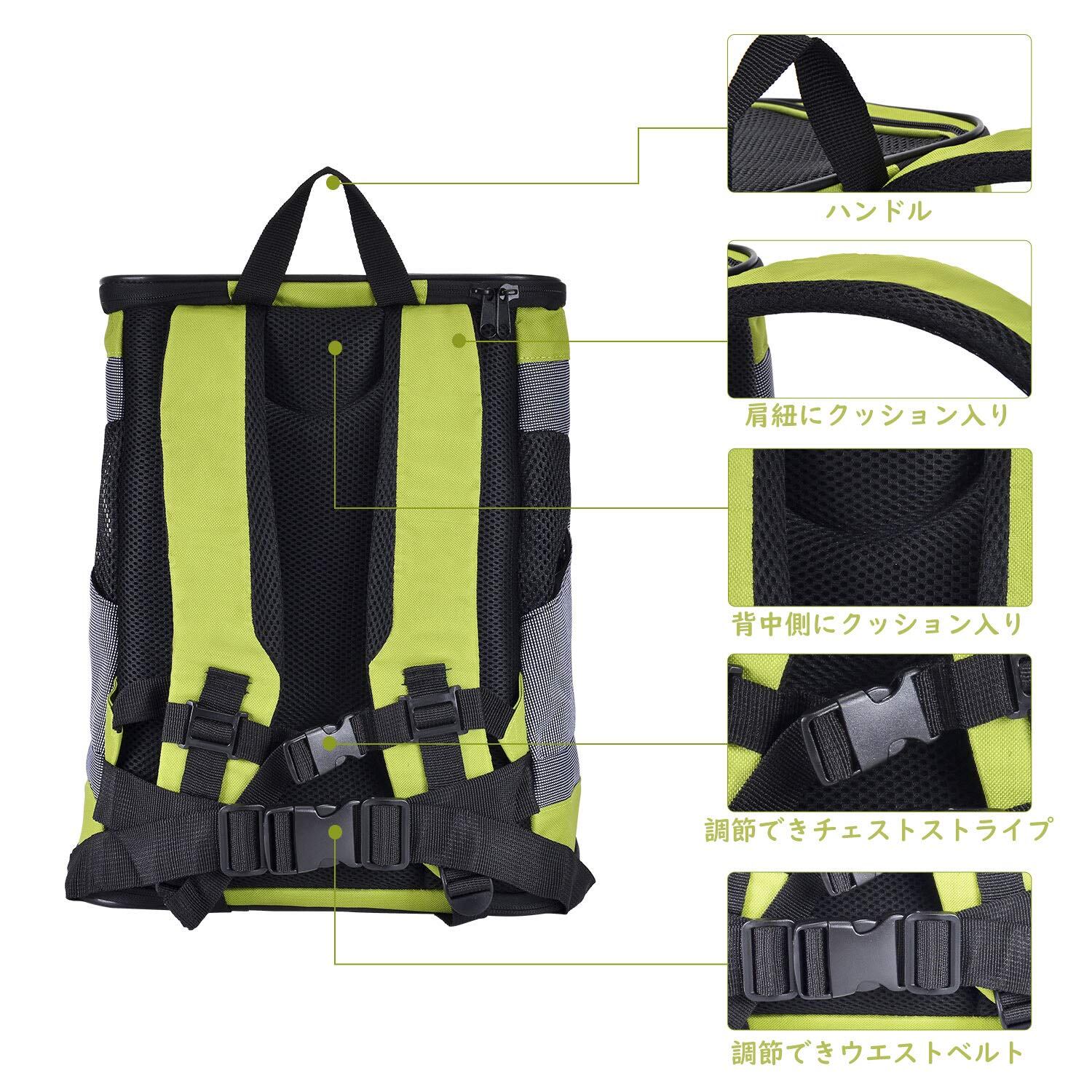 Pettom 猫 きゃりーバッグ リュック 犬 ペットキャリーリュック 猫 可愛い 通気 ペットリュック 崩れないタイプ (グリーン)