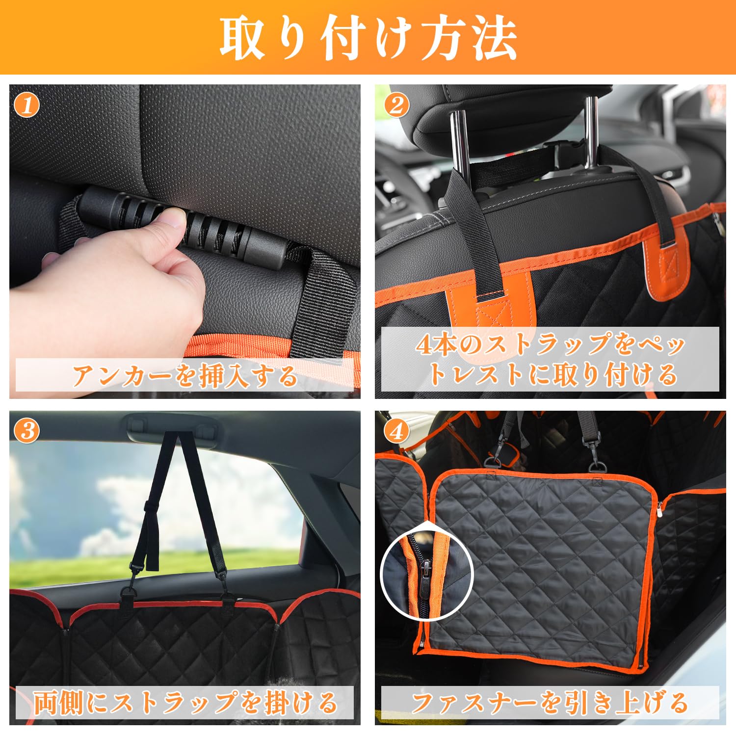 【安定した安全設計】運転中の安全を確保為に、 4つの調節可能な固定ストラップがあり、車によって調整できます。 その上に 犬用シートベルトも1本を追加した。急停車時犬を飛び出し防止できとかペットの乱暴もちゃんと制御できます。犬と運転手にしっかりな安全感を与えます。ベルトの長さは40-70cm調整可能なのでSUVやトラックなどの全車種にもご使用いただけます。