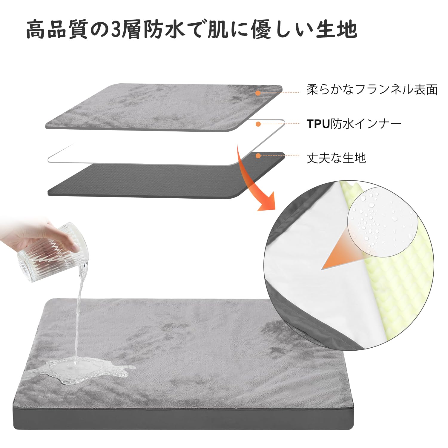 【防水・撥水機能で衛生的】カバーには100%防水のTPUライナーを内蔵し、尿や唾液の浸透をブロック。犬 カーペット 防水やペットボトルカバーのような防水性能で、内部のスポンジを守ります。サイドも防水加工され、清潔な休息スペースを提供します。