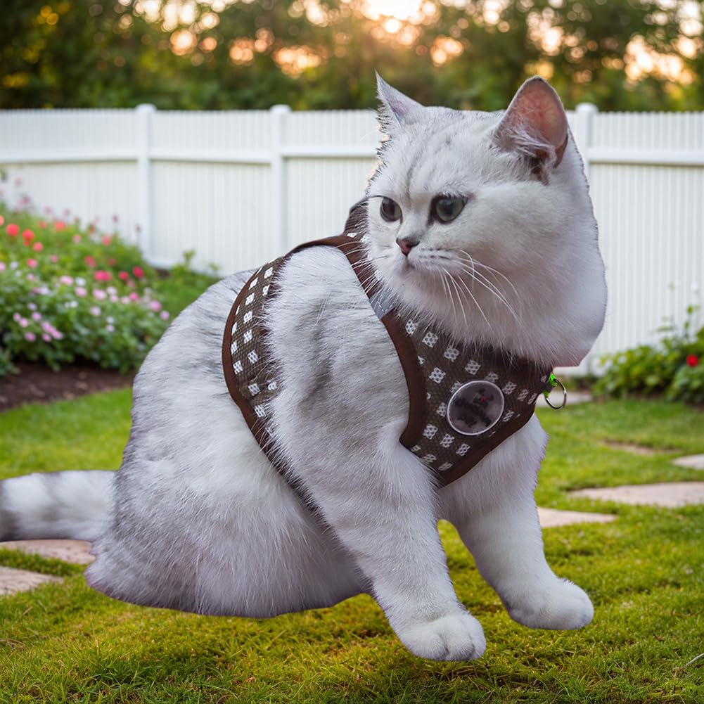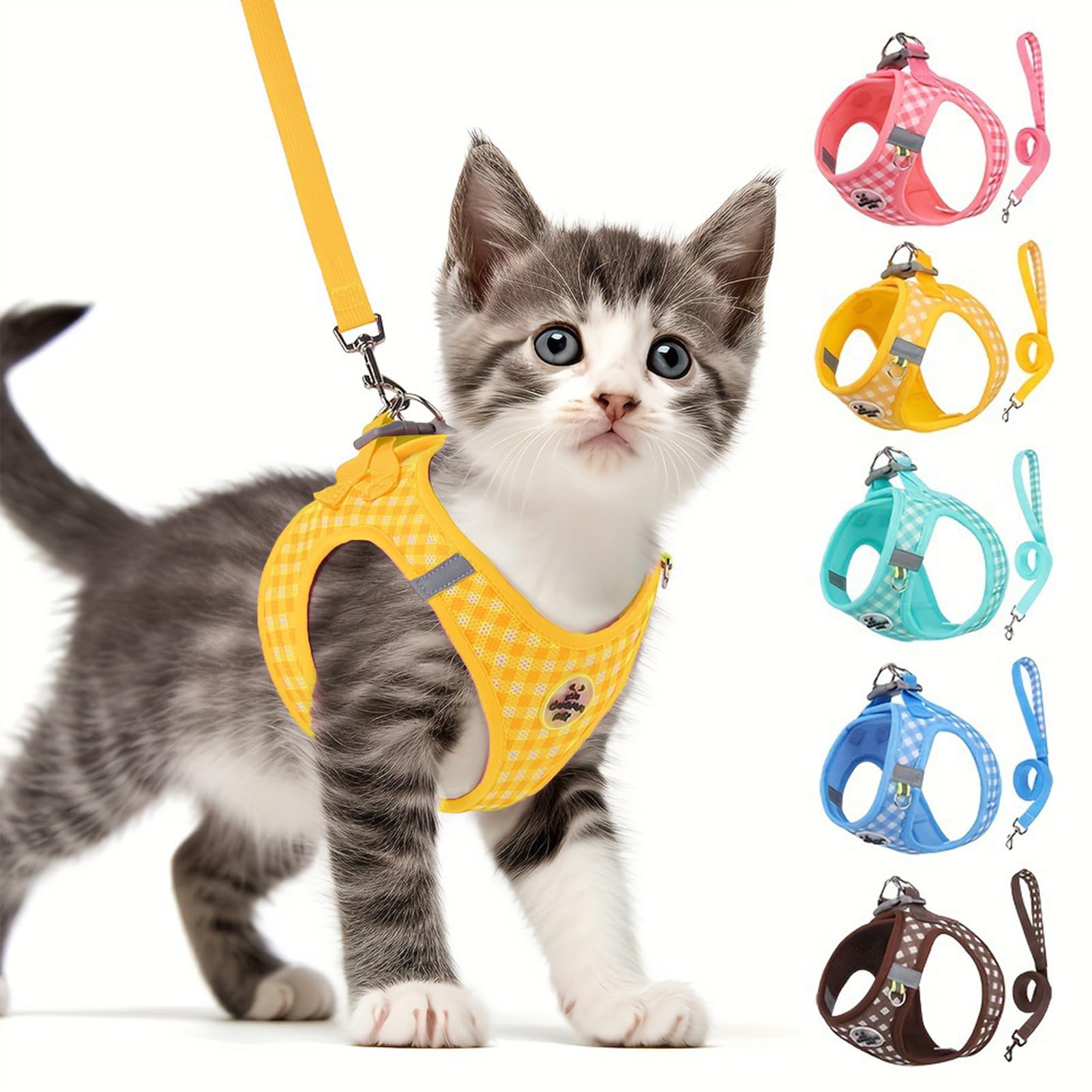 【可愛いだけじゃない、春夏にぴったりのペット用ハーネス】明るいカラーが目を引く、おしゃれなチェック柄の猫用ハーネス・リードセット。