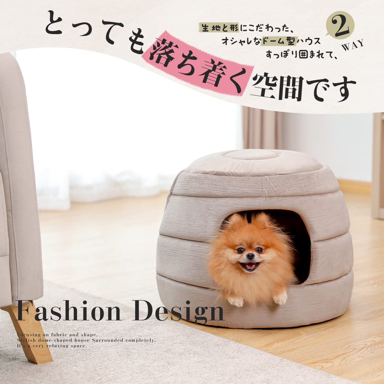 PAWZ Road 犬 ベッド ドーム 犬 ハウス 犬小屋 犬のハウス 猫ハウス 猫ベッド 室内 ペットベッド ハチの巣形 お洒落 かわいい 両用 折りたたみ 2way クッション 取り外し可能 いぬ ねこ ベージュ