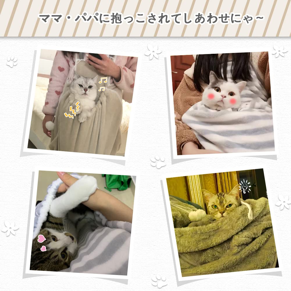 【利用シーン色々】ゆったり大きめサイズのポケットなので、ペットちゃんの寝袋としてはもちろん、にゃんこ・わんちゃんの爪切り時に、バスタオルとして体を包み、視界を制限することでおとなしくさせることもできます。換毛期に抜け毛の吸着マットに、衣服にの毛付き対策もおすすめ。折り畳むとコンパクトになるので、普段のご家庭での使用から、万一の避難時等まで、持ち歩きや防災用に備えておくと重宝します