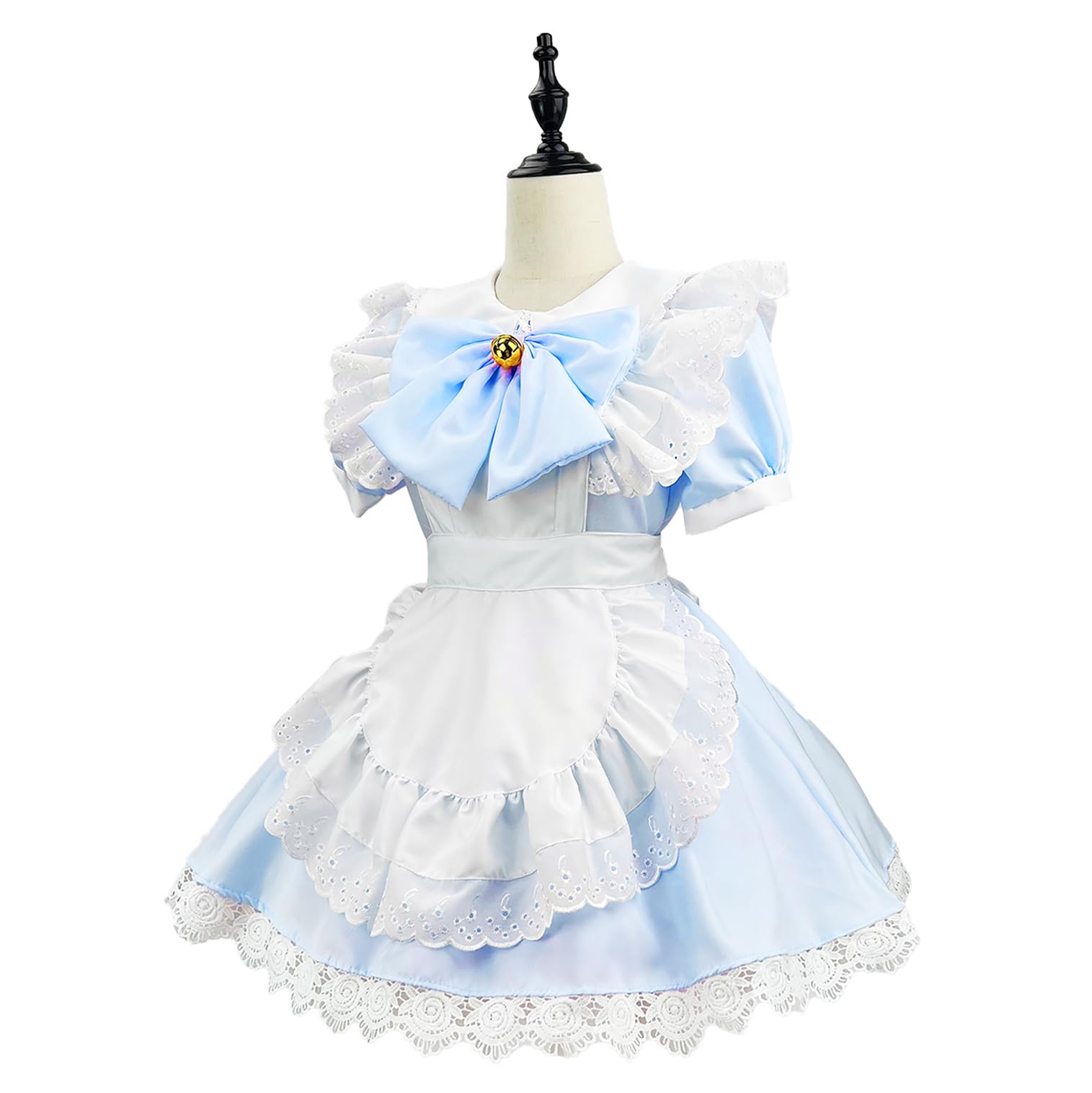 [MEYOIJK] メイド服 コスプレ 萌え コンカフェ メイド 定番 ショート丈 可愛い レース メイドコスチューム 5点セット ロリータ ワンピース レディース メンズ 大きいサイズ 仮装 ハロウィン 女装 人気 学園祭 撮影