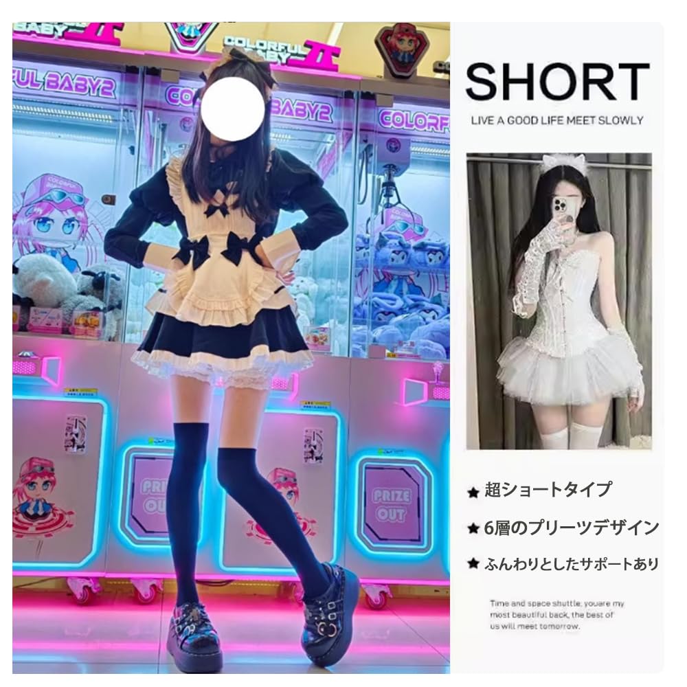 かわいい:は、チュールとレースの組み合わせで、立体的なプリーツデザインで、シンプルなのに単調ではありません。コスプレやロリータが好きな人にぴったりです。ロリー群、メイド服、ドレスなどを組み合わせることができます。着るだけで、どんなスカートもふんわり、ふわふわになります。プリンセスドレスのパニエとして使用できるほか、単独で着用することもできる。