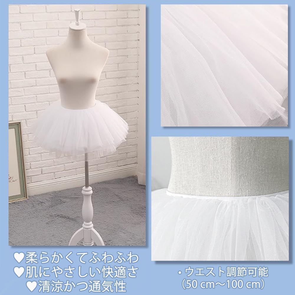 セット内容:インナースカート1セット,サイズ:約28cm(腰围可调节范围:50~100CM)、カラー:ホワイト。