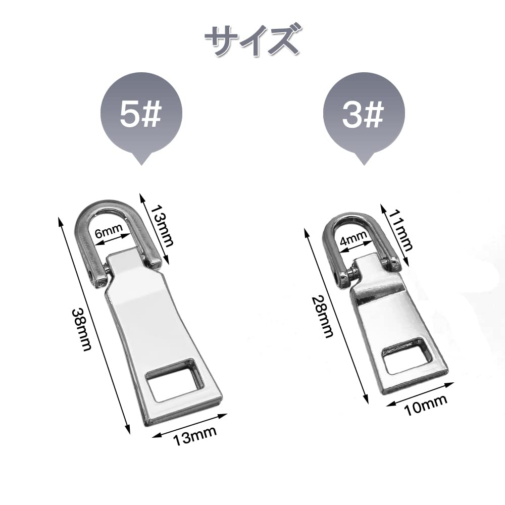 ファスナー 交換用 引き手 4個セット 金属製 チャック ジッパー 持ち手 交換 ファスナー修理用 リュック/財布/衣類/ブーツなど DIY 手芸 手作り 裁縫 (シルバー小さめ3#)