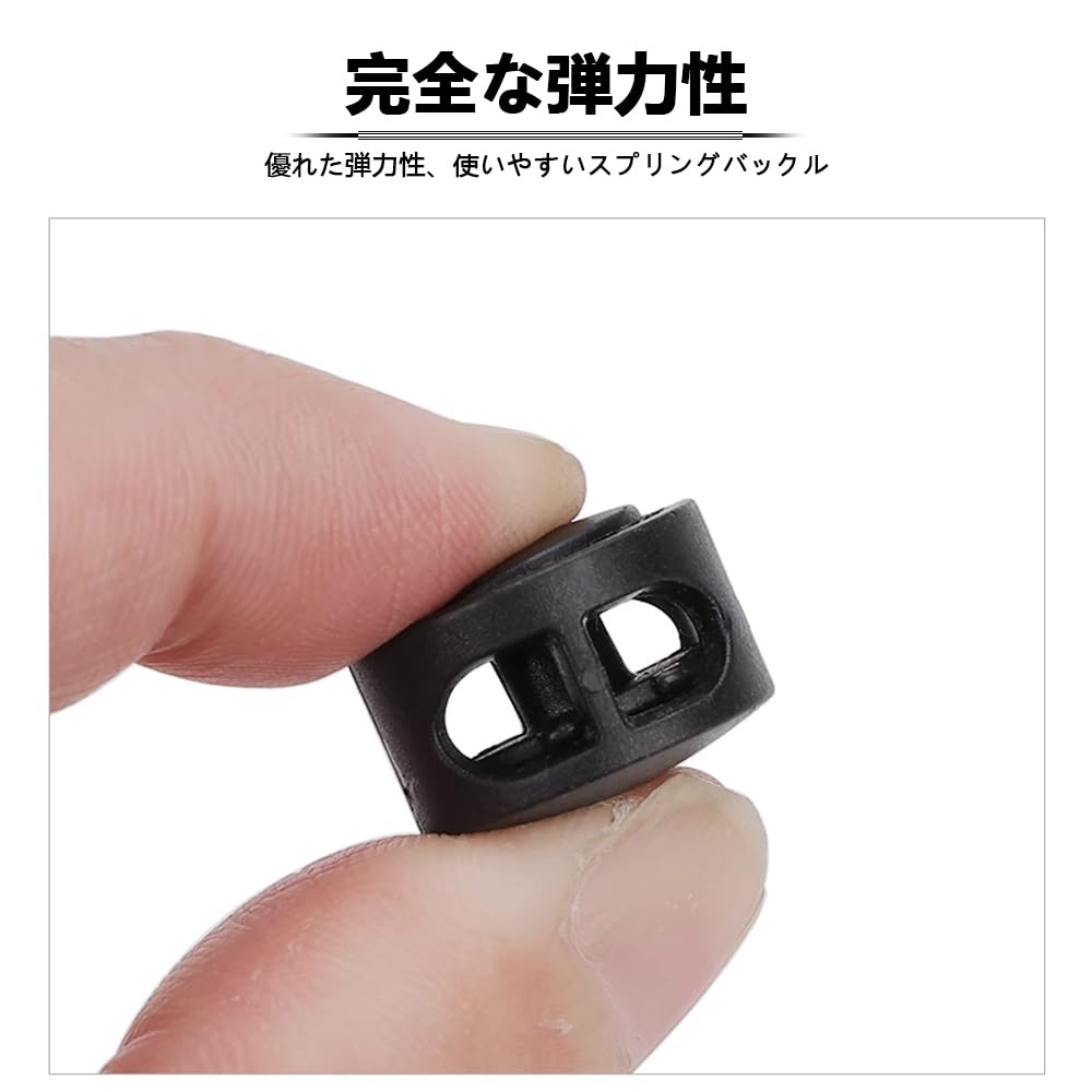コードストッパー 2つ穴タイプ ひも止め金具 20個セット プラスチック製 コードロック スプリング 交換 補修用 DIY アクセサリー パーツ スポーツウェア 帽子 靴の紐 扁平双孔 黒