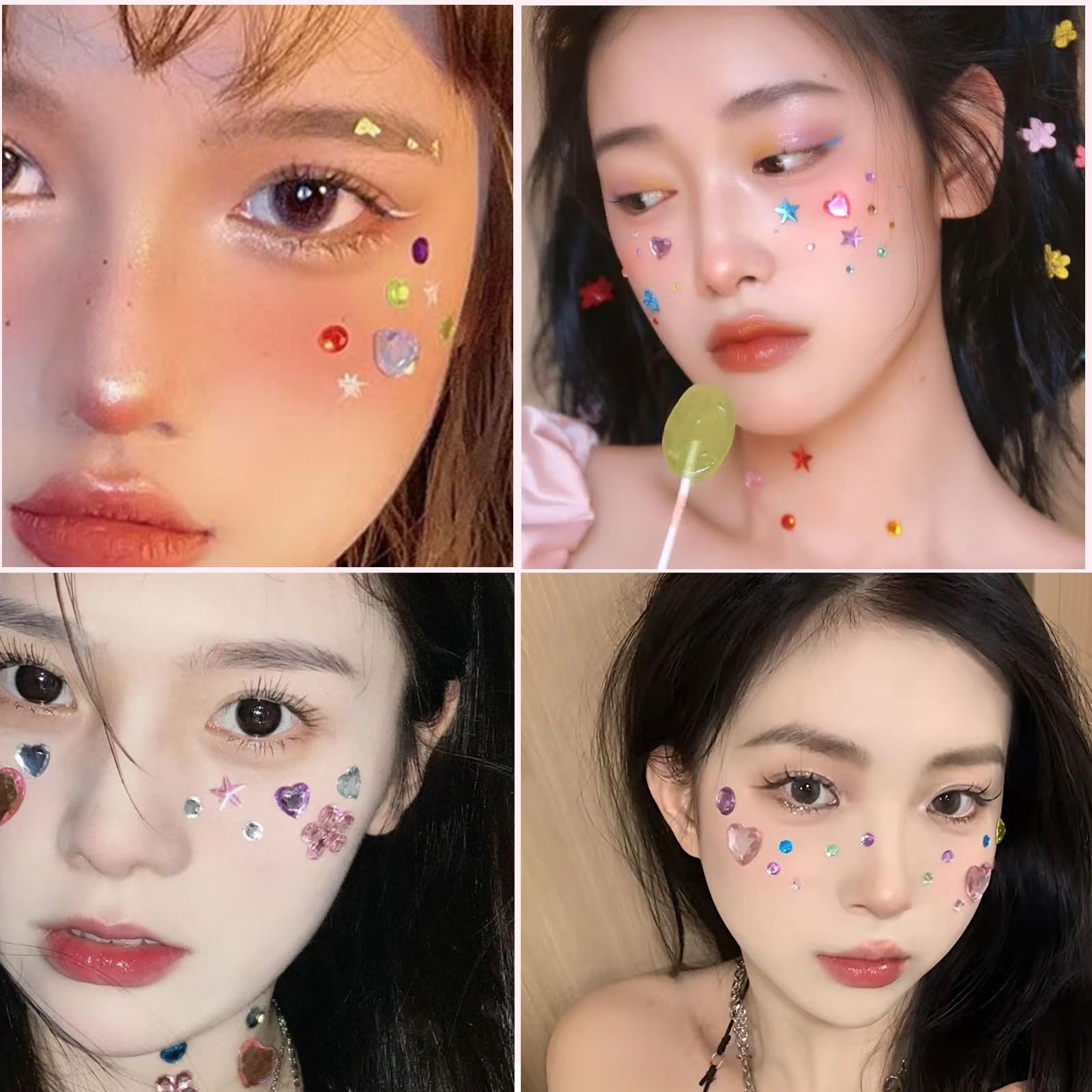 DIY用品: キラキラメイクアップステッカー、アクリル素材で作られ、耐久性があり実用的です。デザインによってはDIY工芸品やジュエリーなどにもご使用いただけます。衣服、携帯電話、ネイルアートアクセサリー、バッグ、グリーティングカードの作成などにも非常に適しており、あなたの生活に彩りと創造性を加えます