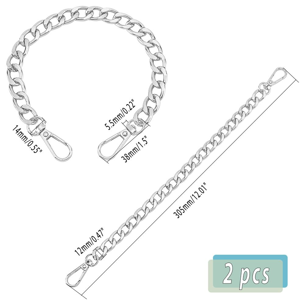 PH PandaHall バッグチェーン 持ち手 2本 交換用 延長チェーン チェーンストラップ 財布 ハンドバッグ 携帯 スマホケース ストラップ素材 アクセサリーパーツ 手作り素材 バッグ小物 長さ30.5cm 銀色