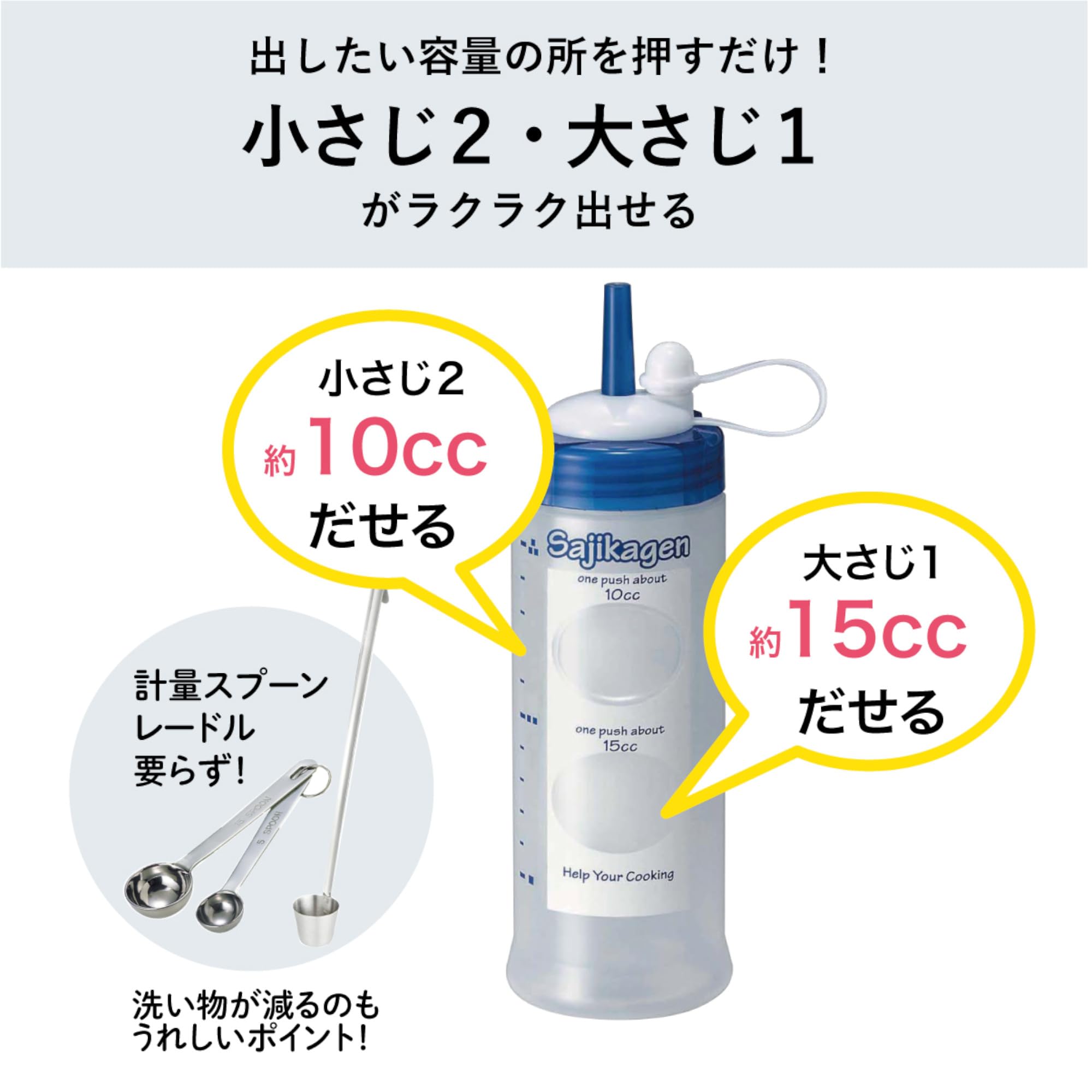 ●料理の基本、10cc(小さじ2)と15cc(大さじ1)の2つの容量を簡単に出せる
