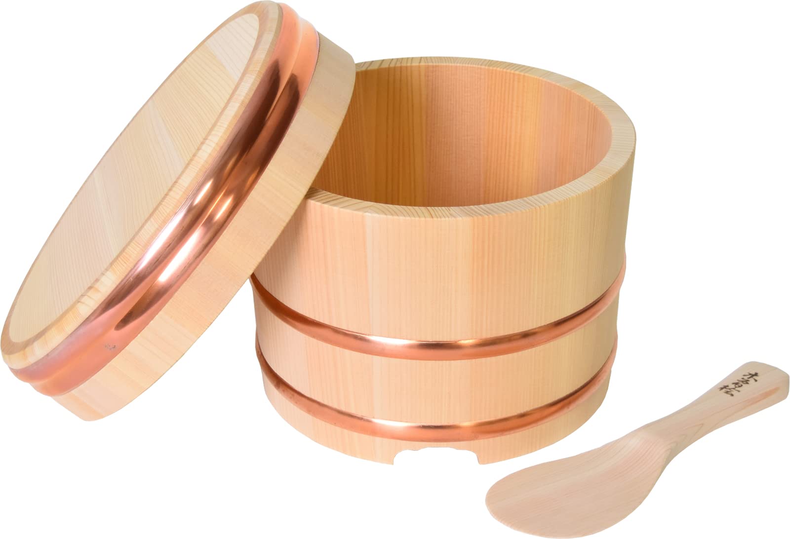 木曽さわら 江戸型おひつ 3合用 手作り杓文字付き ナチュラル