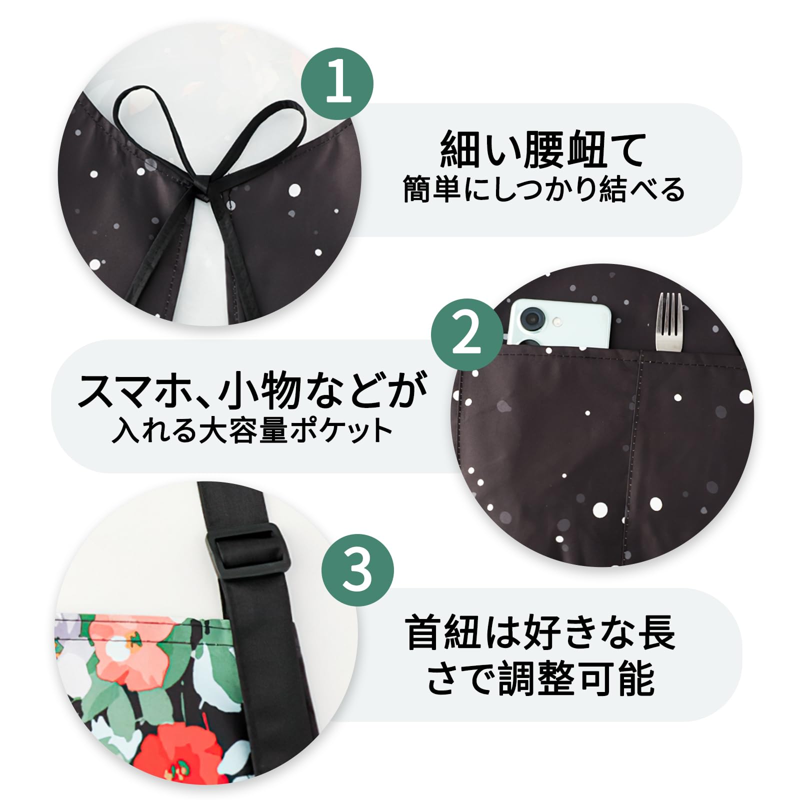 [SFTRADE] エプロン 女性用 首掛け 北欧風 花柄シンプル 防水 大容量ポケット 汚れにくい シワ防止 料理教室用 カフェ 保育士