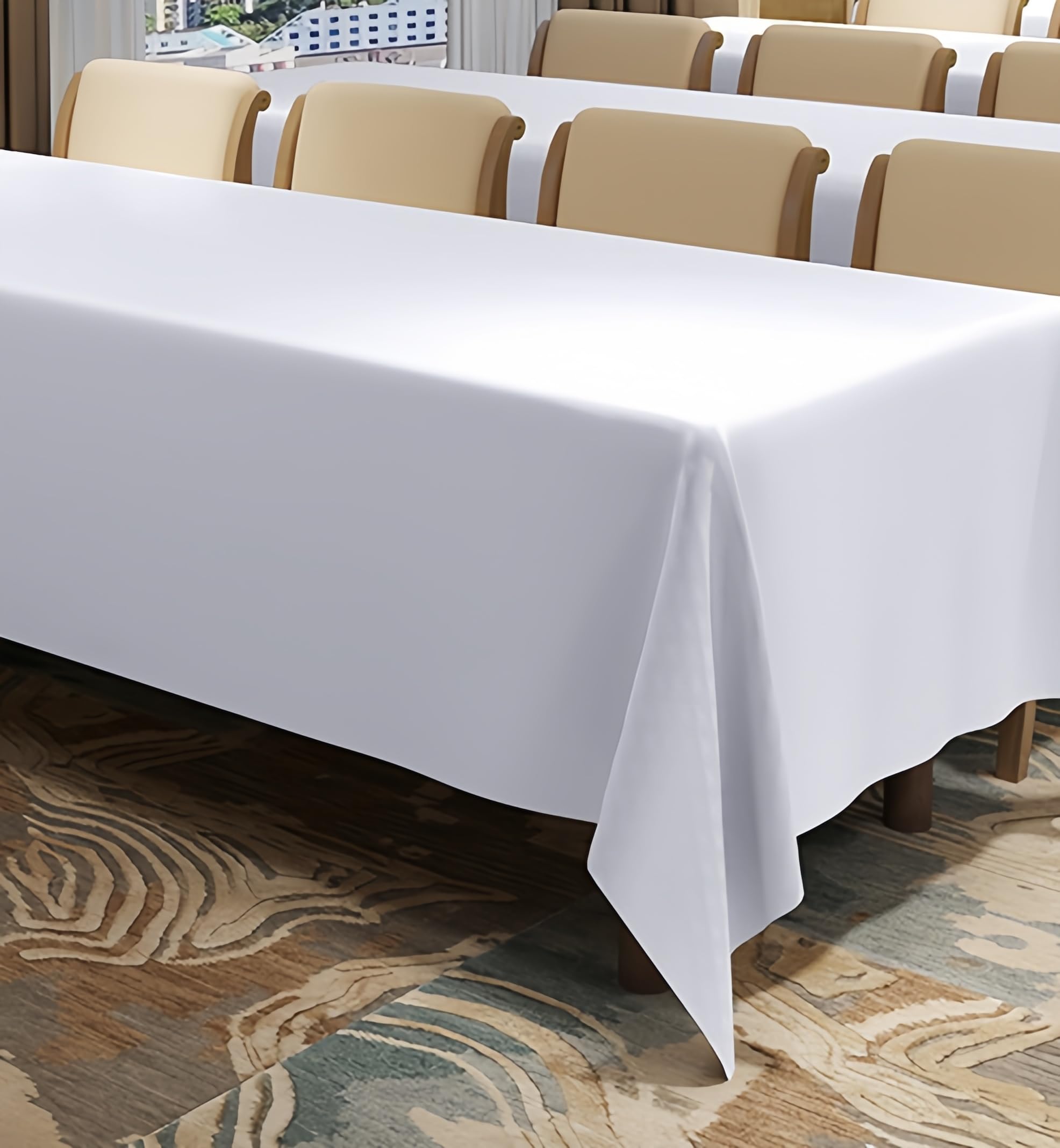 テーブルクロス 150×260cm 長机用 白 長方形 汚れ防止 おしゃれ シンプル テーブルカバー 食卓 パーティ 会議 展示会 イベント セレモニー アウトドア 装飾用布 ディスプレイ布 無地布 (1枚)