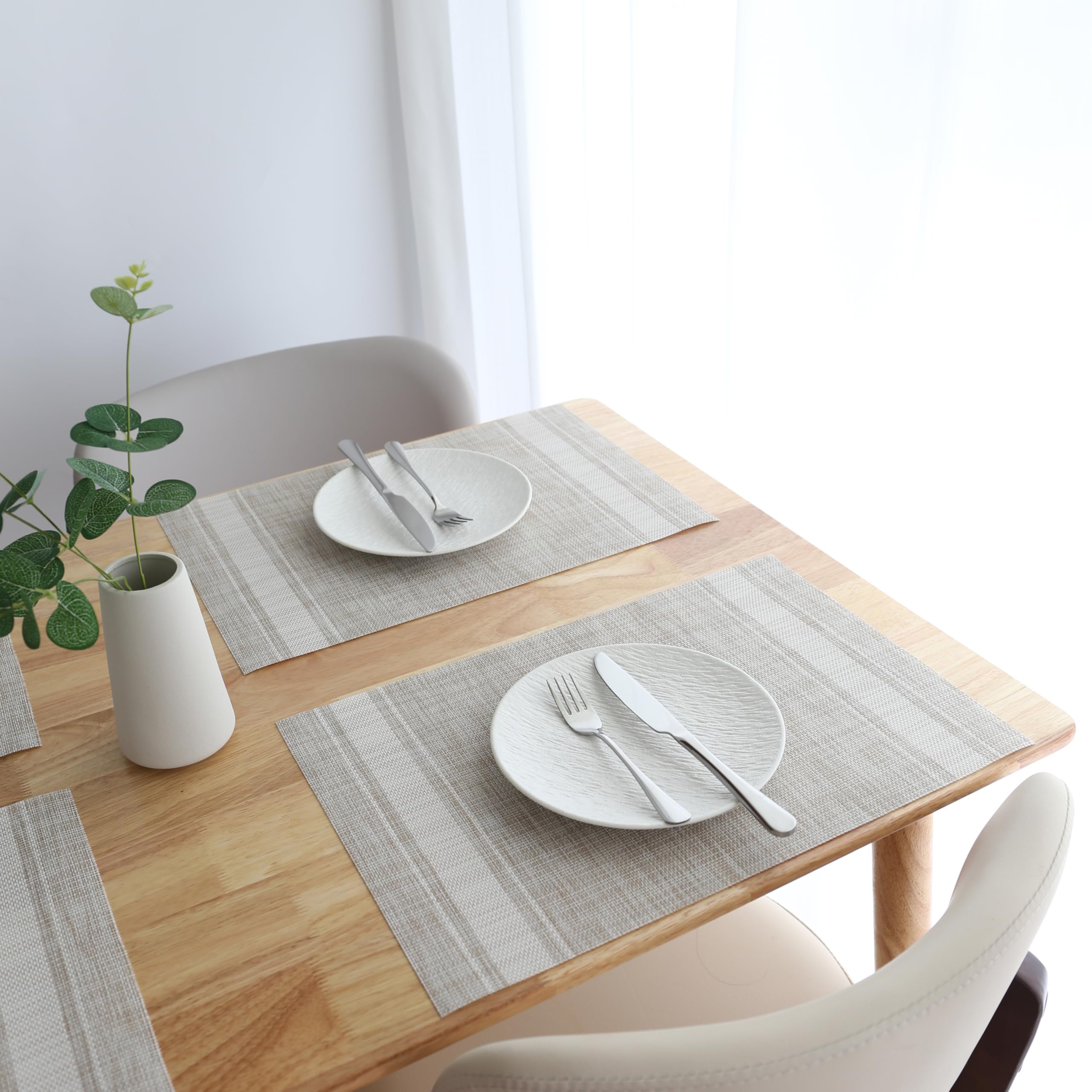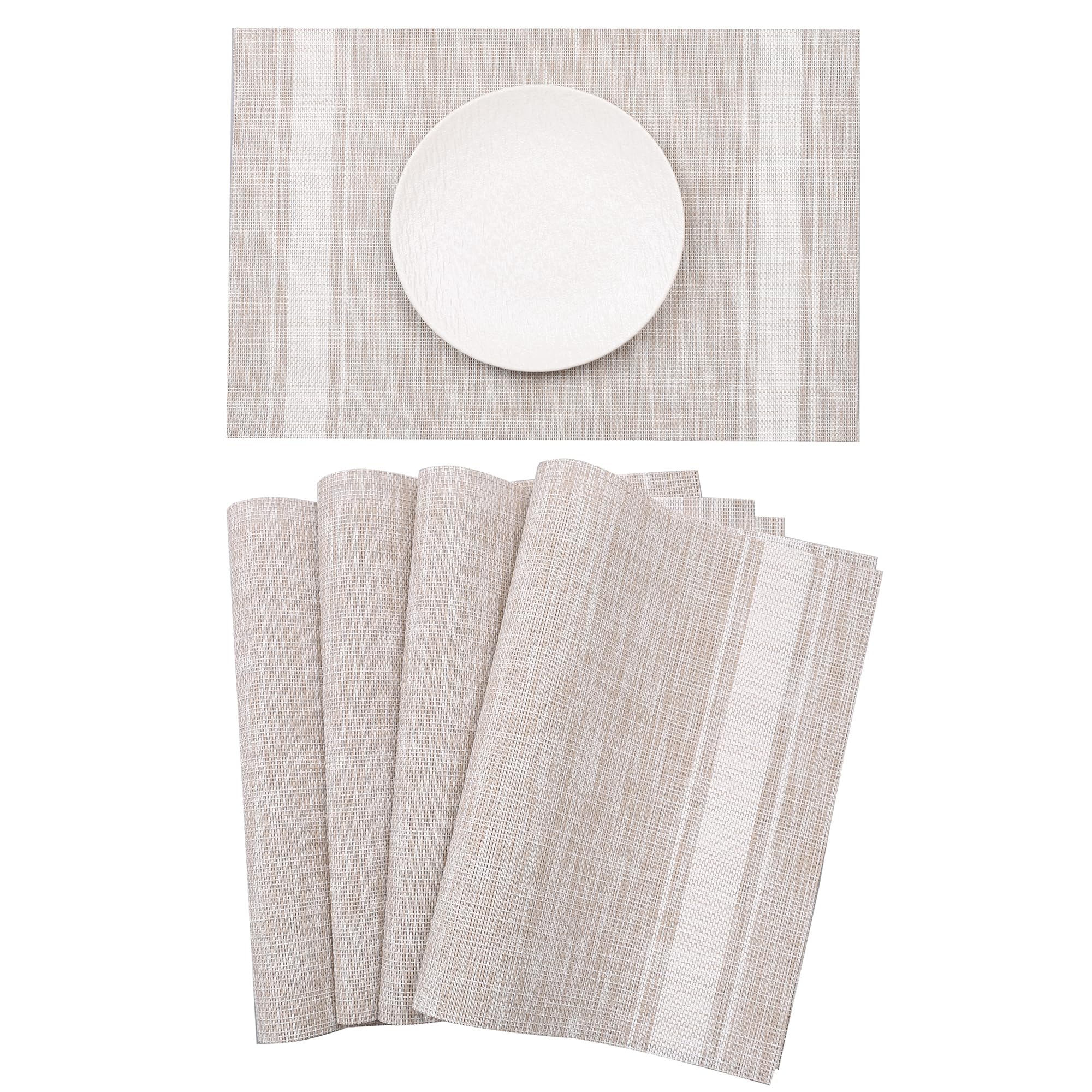 ランチョンマット 食マット、4 枚セット、おしゃれで、清掃しやすいです。家庭やレストランでの使用に適しています。撥水、防汚、断熱、滑り止め機能があります。 (White stripe)