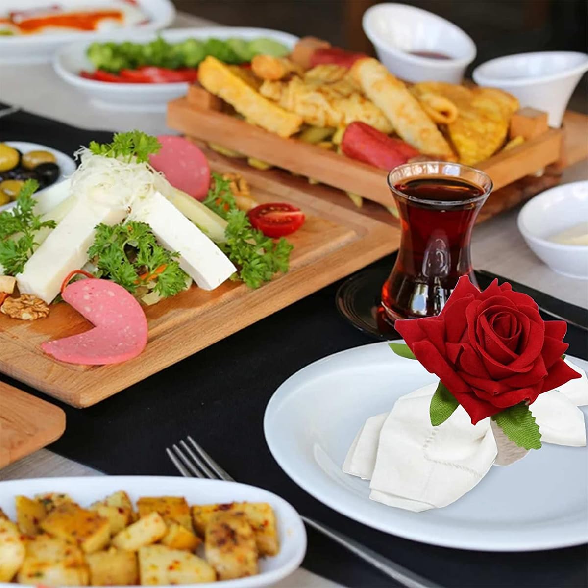 ❀【優雅なバラの花】:ロマンチックな造花ナプキン棚はとても精緻で、あなたの食卓に多くの優雅さを加えて、本物の花と同じように見えますが、永遠に枯れることはありません。