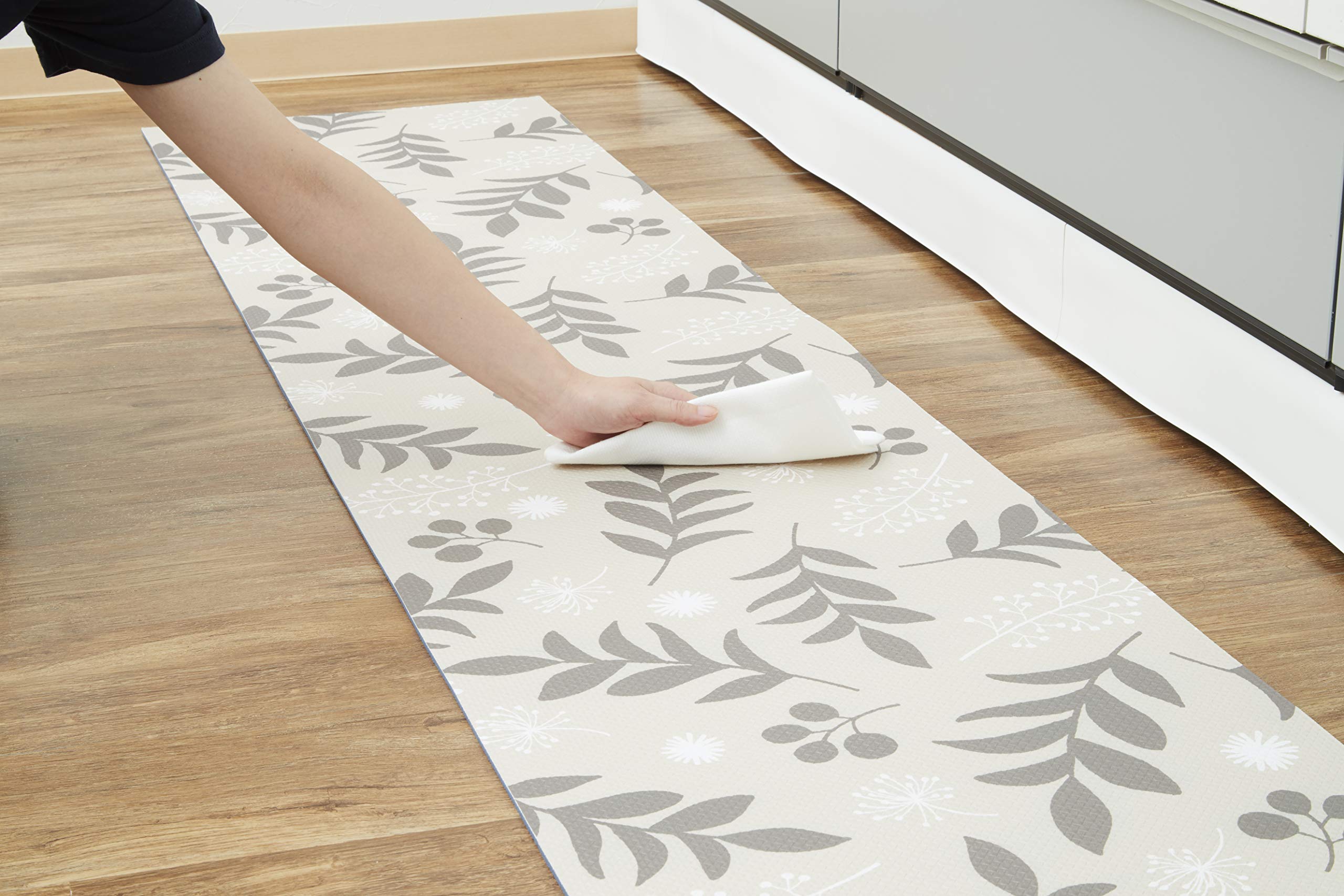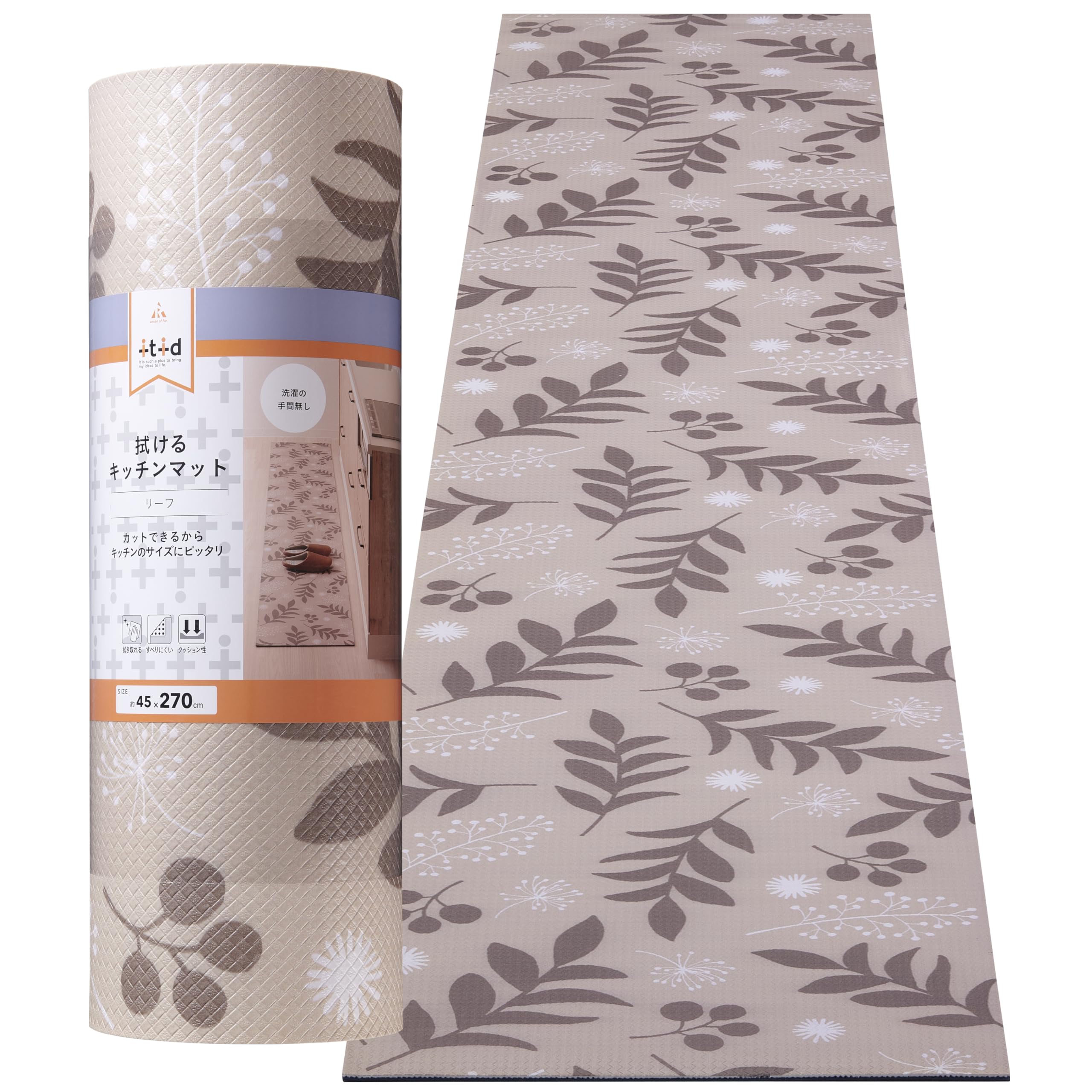 アール(R) ロングキッチンマット +it+id リーフ 270 45×270×0.6(cm) すべりにくい素材 水に強い カット可能 LK-004-AA