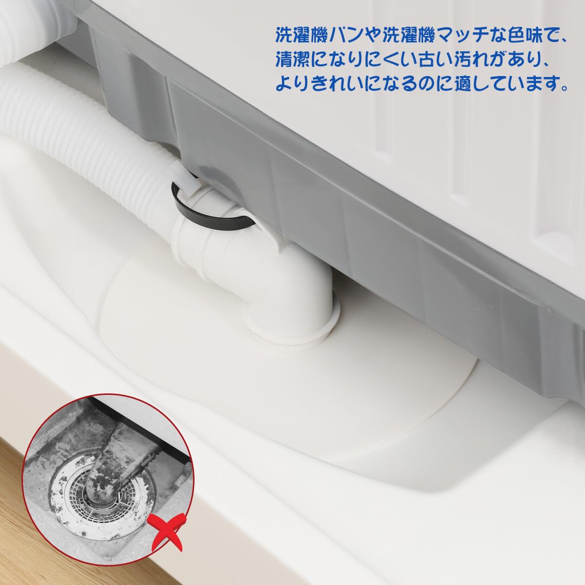 【目詰まり防止】:髪の毛やホコリが排水口に侵入することを防ぎます。洗濯機の排水口周りのお掃除が簡単になります。
