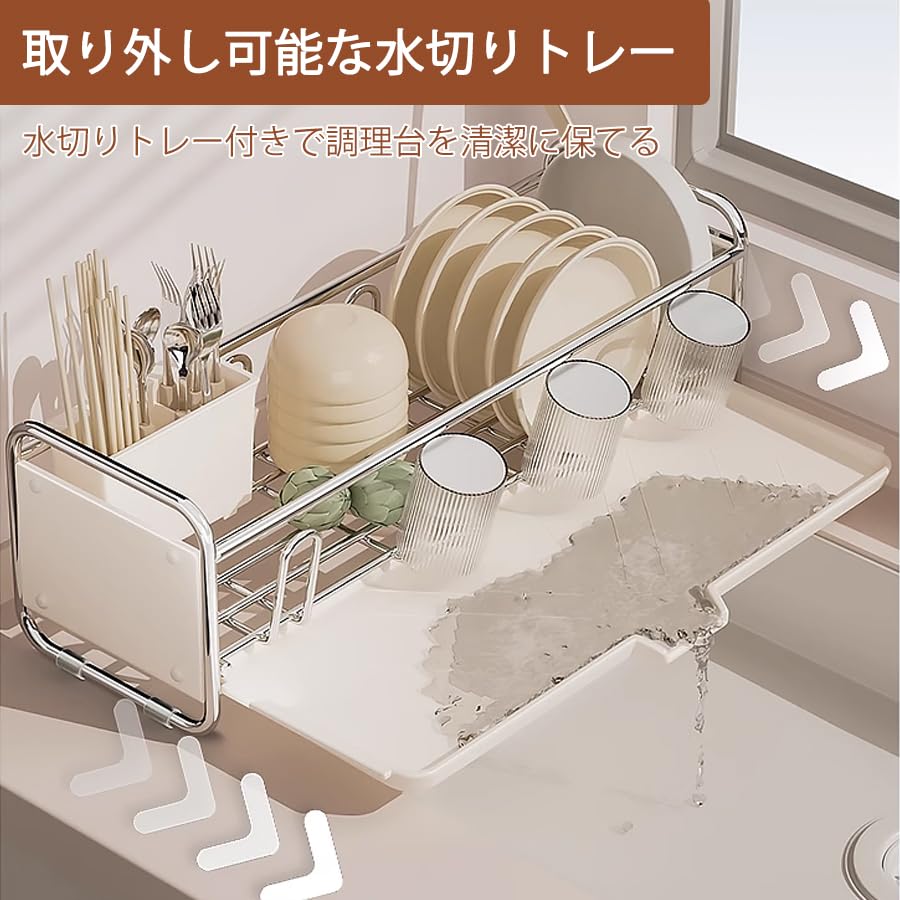 水切りラック スリム 食器 水切り かご シンク上 ラック 大容量 キッチン 箸立て 省スペース 食器乾燥 クリームホワイト 幅43*奥行17*高17CM
