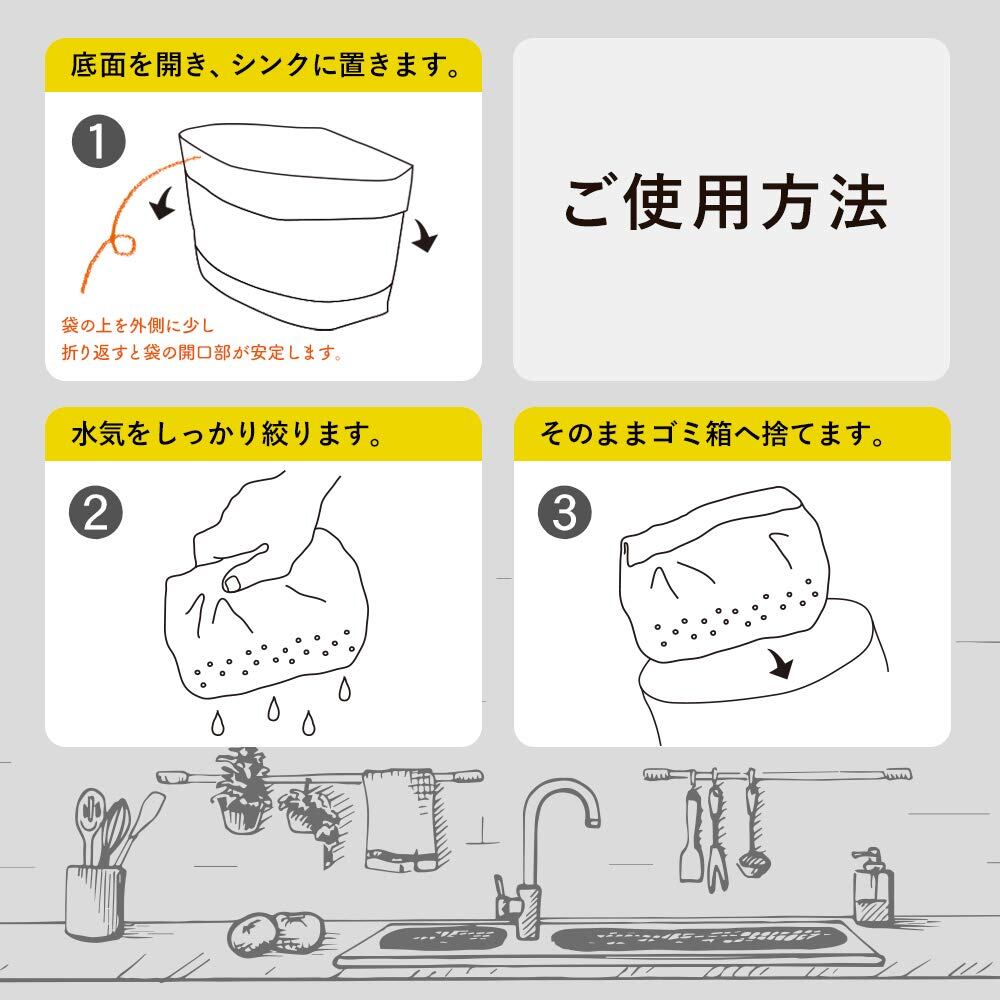 ●ごみを入れ捨てる時は袋の上を折り、押さえるように水を絞ってください。