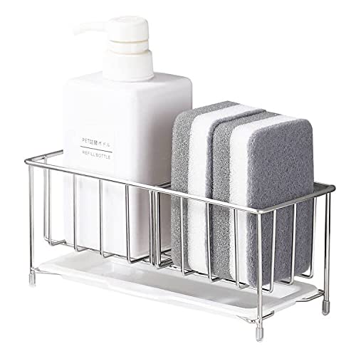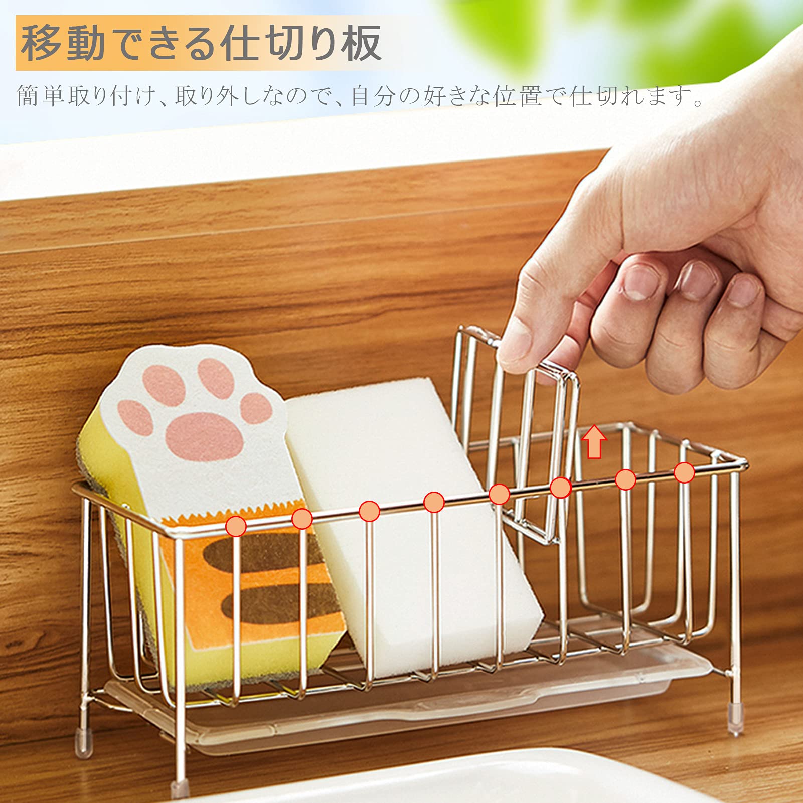 スポンジホルダー キッチンスポンジ洗剤置き 18/8ステンレス製 スポンジラック たわし入れ スポンジ置き キッチン収納 小物 (シルバー)