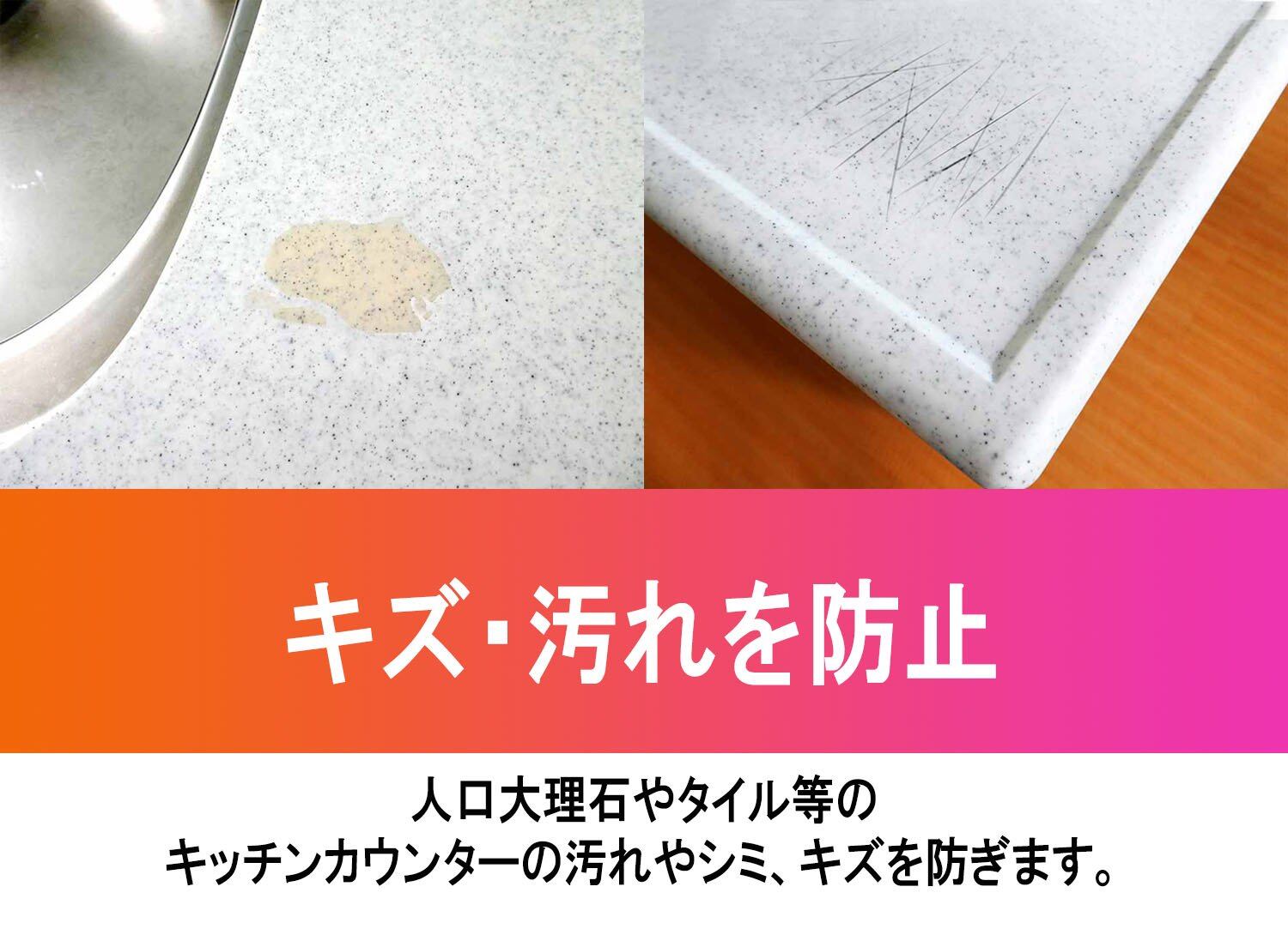 キズ防止・・・人工大理石やタイル等のキッチンカウンターの汚れやシミ、キズを防ぎます。