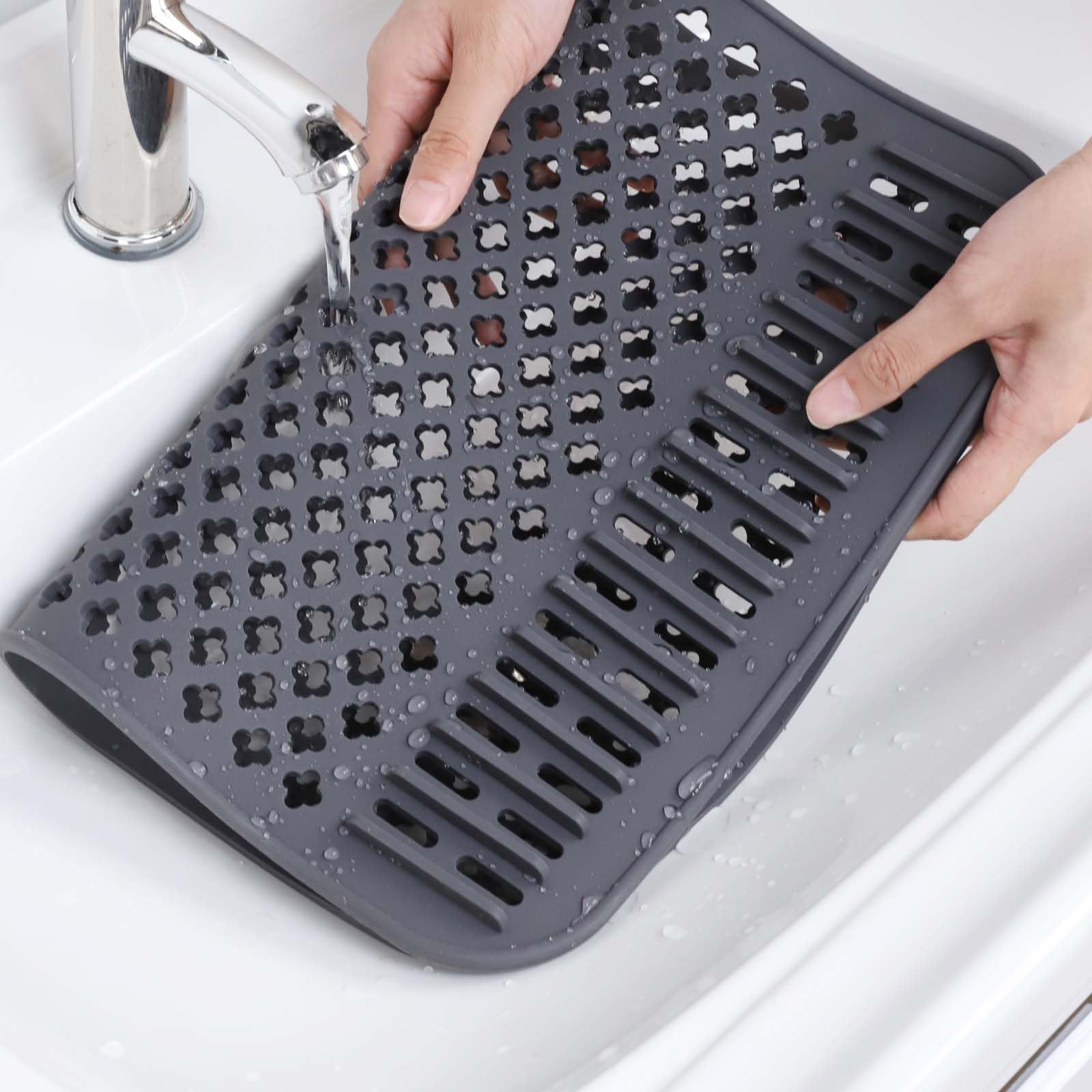 DoocliB シンクマット シリコン サイズ43x32大きいシンク用 断熱マット 排水マット キッチン用 耐熱 滑り止め水切りマット 防音 水流し 調理台保護 シンク 食卓( グレー )