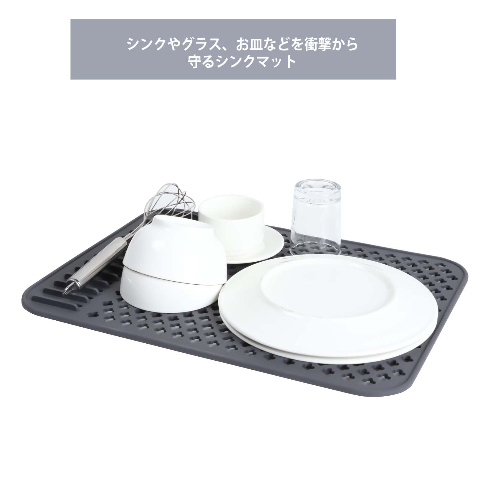 シンクマット シリコン サイズ43x32大きいシンク用 断熱 キッチン シンク シリコン キッチン用 耐熱 滑り止め水切り 防音 水流し 調理台保護 シンク 食卓( グレー )