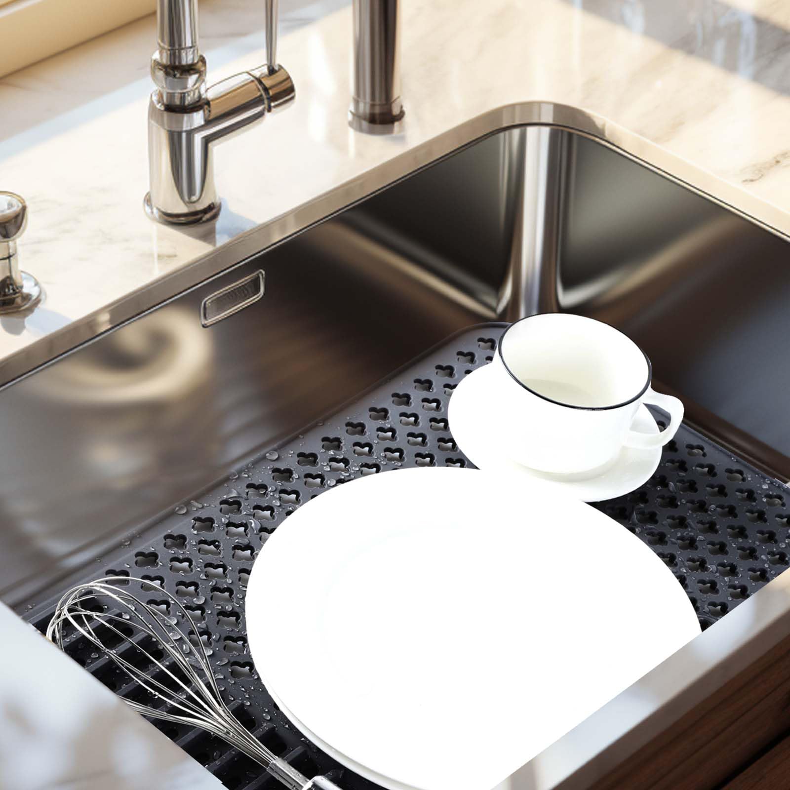【環境に優しい】シンクマット流し台 サイズ:43x32大きいシンク用。シリコン材質,環境に優しい,皮膚と長期接触できます、匂いはゼロで、長期間使用しても色は変わりません。