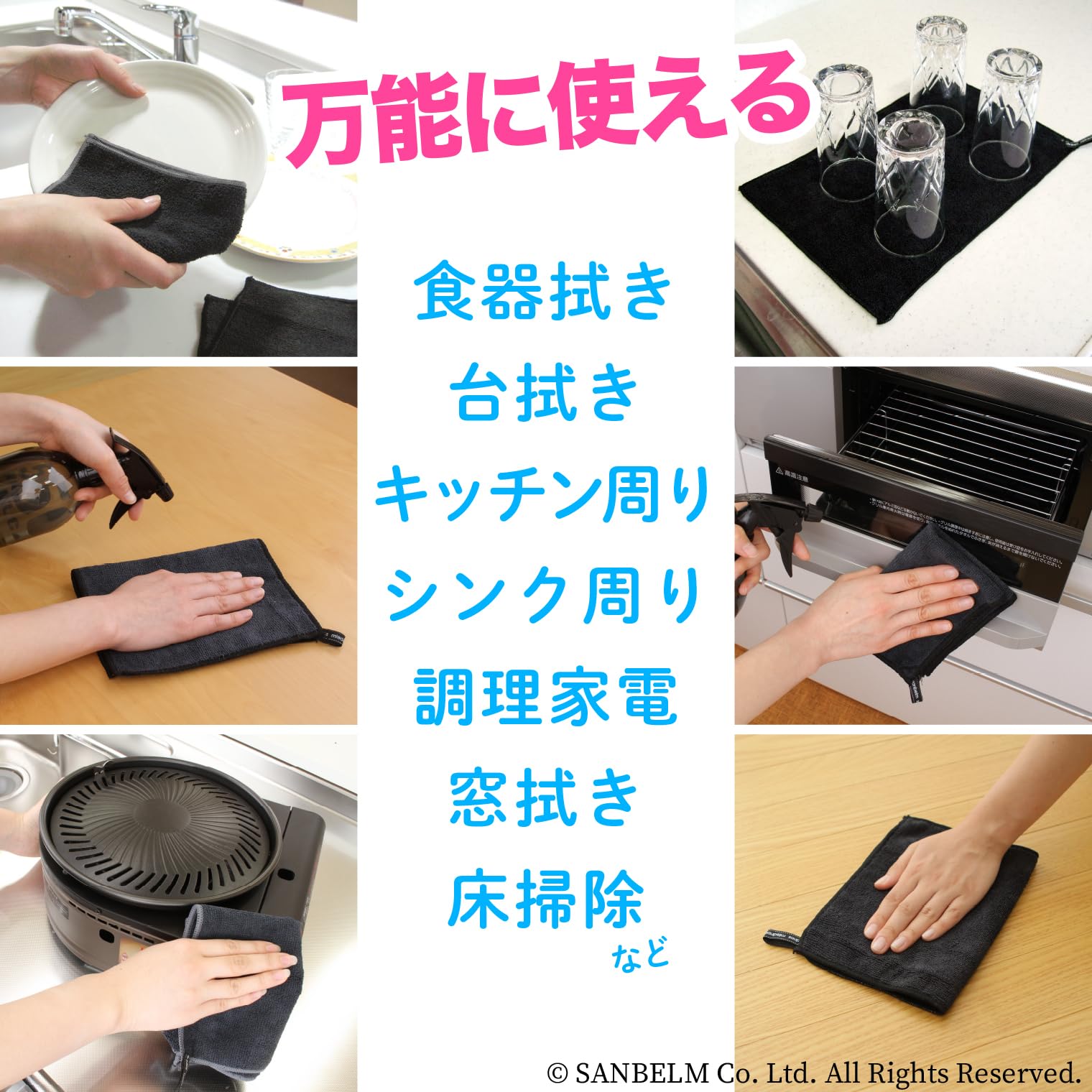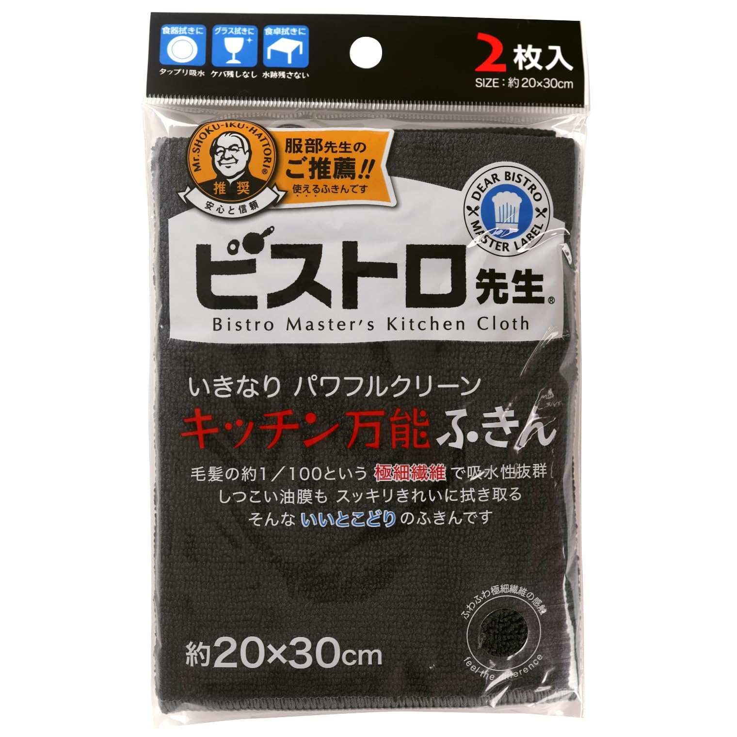 サンベルム(Sanbelm) マイクロファイバー ビストロ先生 キッチン 万能ふきん 2枚入 ブラック